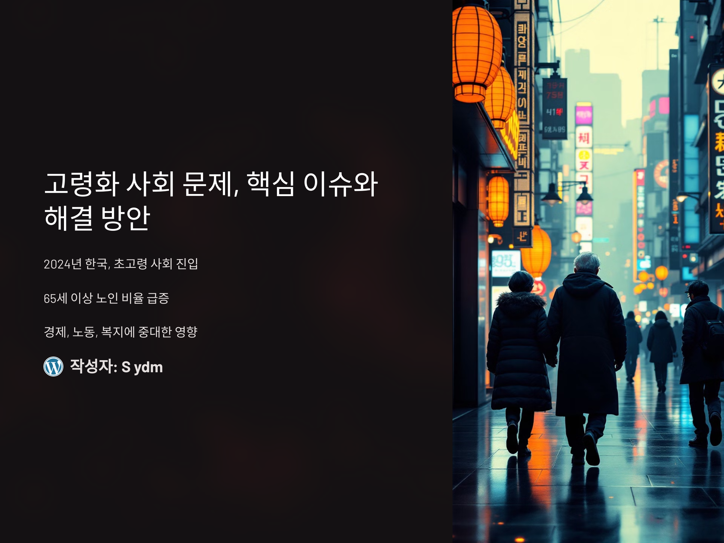 국은 2024년 기준 초고령 사회로 진입하며, 전체 인구 중 65세 이상 노인의 비율이 급격히 증가하고 있습니다. 이러한 변화는 경제, 노동 시장, 복지 체계에 중대한 영향을 미치며, 새로운 사회적 도전과제를 만들어냅니다. 동시에, 이로 인해 창출될 수 있는 기회들도 존재합니다. 고령화 문제를 깊이 이해하고 효율적인 대응책을 모색해봅시다.