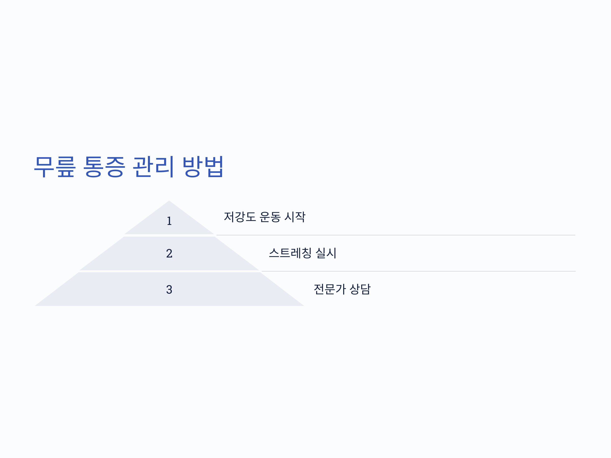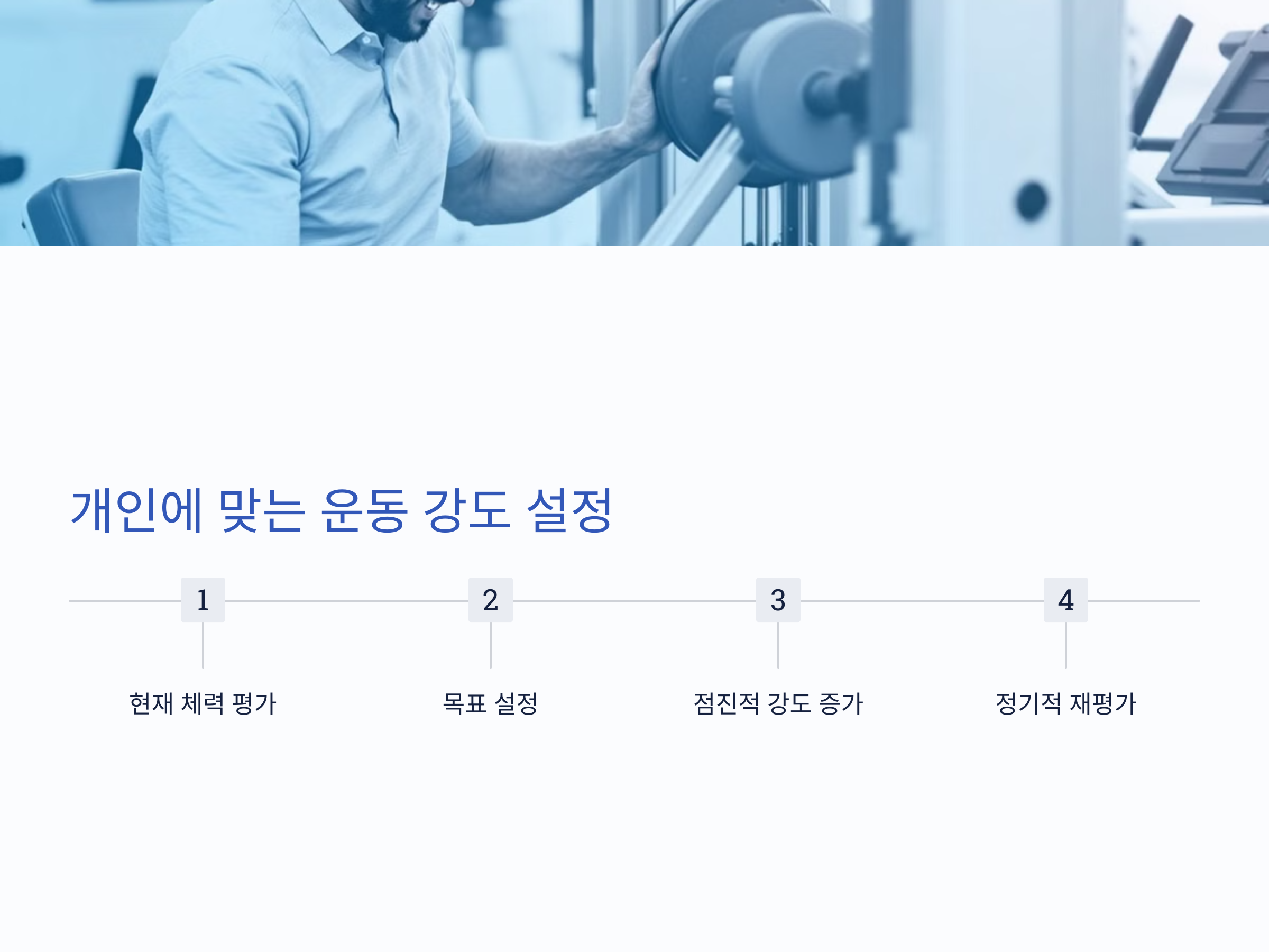 - 저강도 운동 시작: 걷기, 자전거 타기 같은 관절 부담이 적은 운동을 선택하세요.