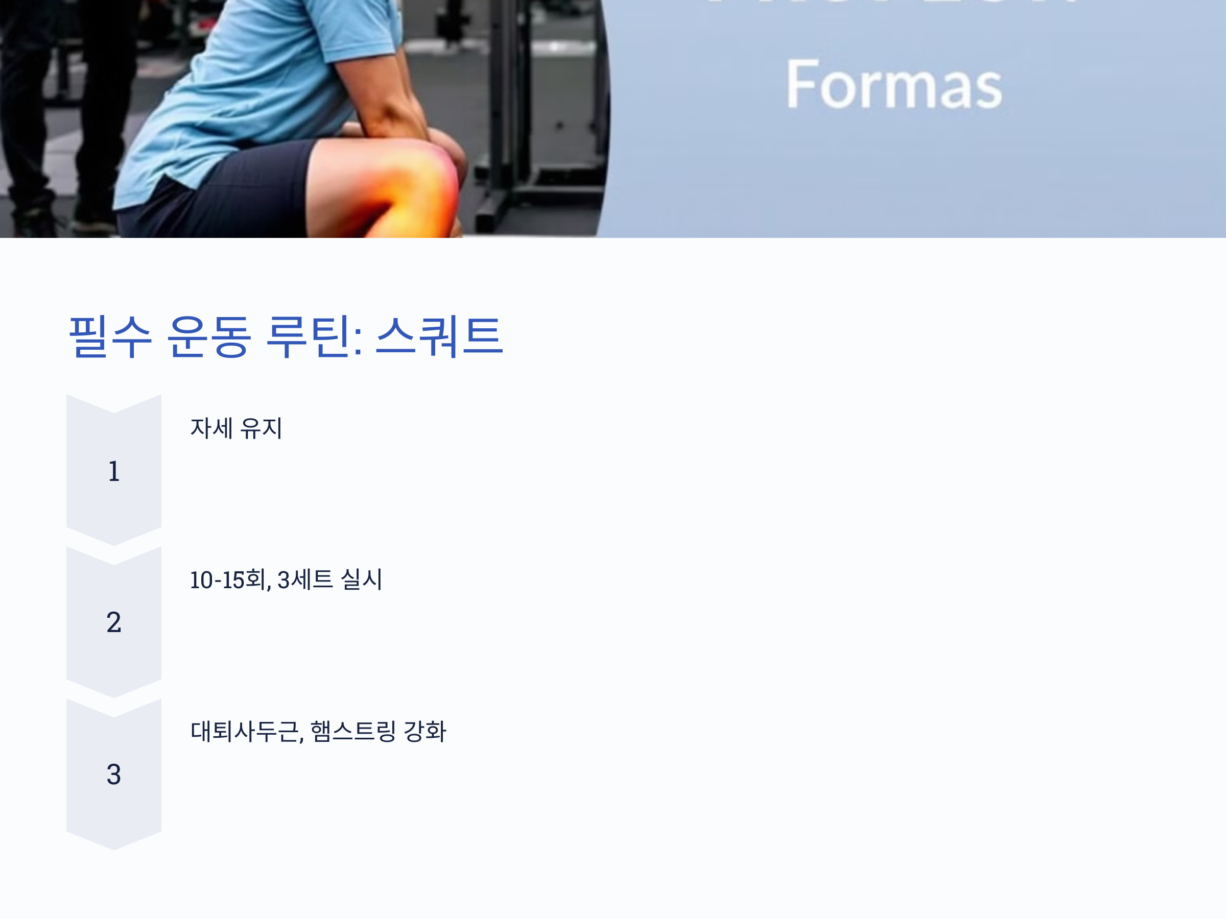 이미 통증이 있는 경우 무리한 운동은 오히려 부상을 초래할 수 있습니다. 따라서 통증 완화와 근력 강화를 동시에 고려한 접근이 필요합니다.