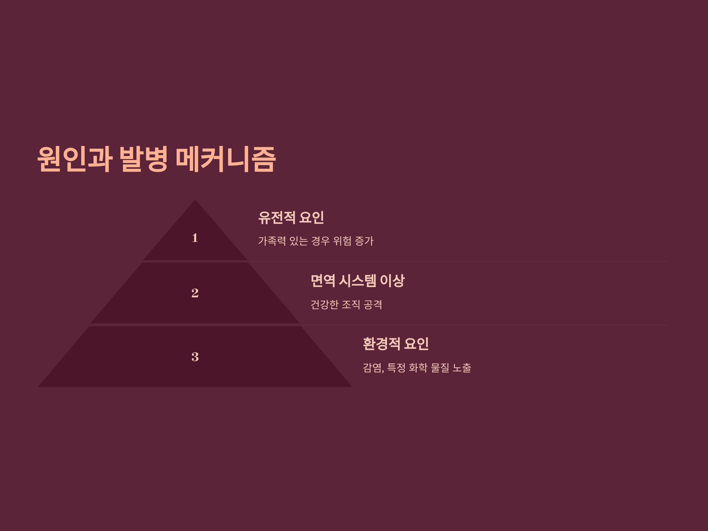 - 면역 시스템의 이상: 면역 체계가 정상적으로 작동하지 않아 건강한 조직을 공격하게 됩니다.