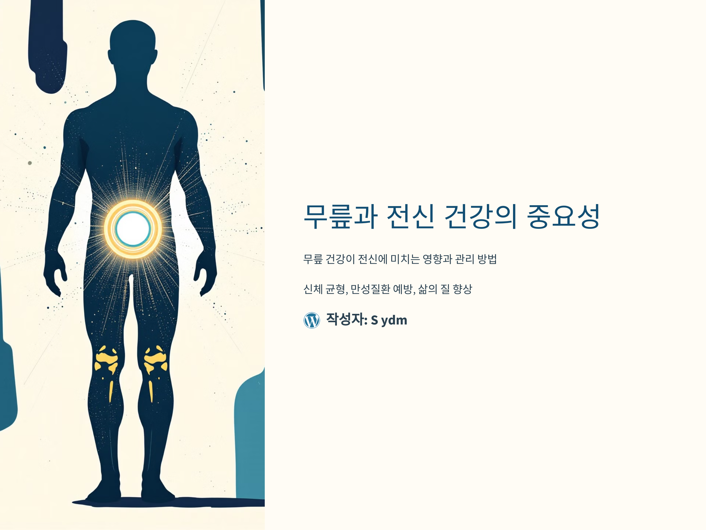 무릎 관절은 걸을 때마다 체중의 3배에 달하는 압력을 받습니다. 따라서 무릎의 건강은 단순한 이동의 문제가 아니라, 신체 전반의 균형과 기능을 좌우합니다. 무릎이 손상되면 몸 전체의 체중 분포가 바뀌어 허리와 척추에도 무리를 줄 수 있습니다. 이는 장기적으로 자세 불균형, 척추 질환, 그리고 근육 약화를 유발합니다.