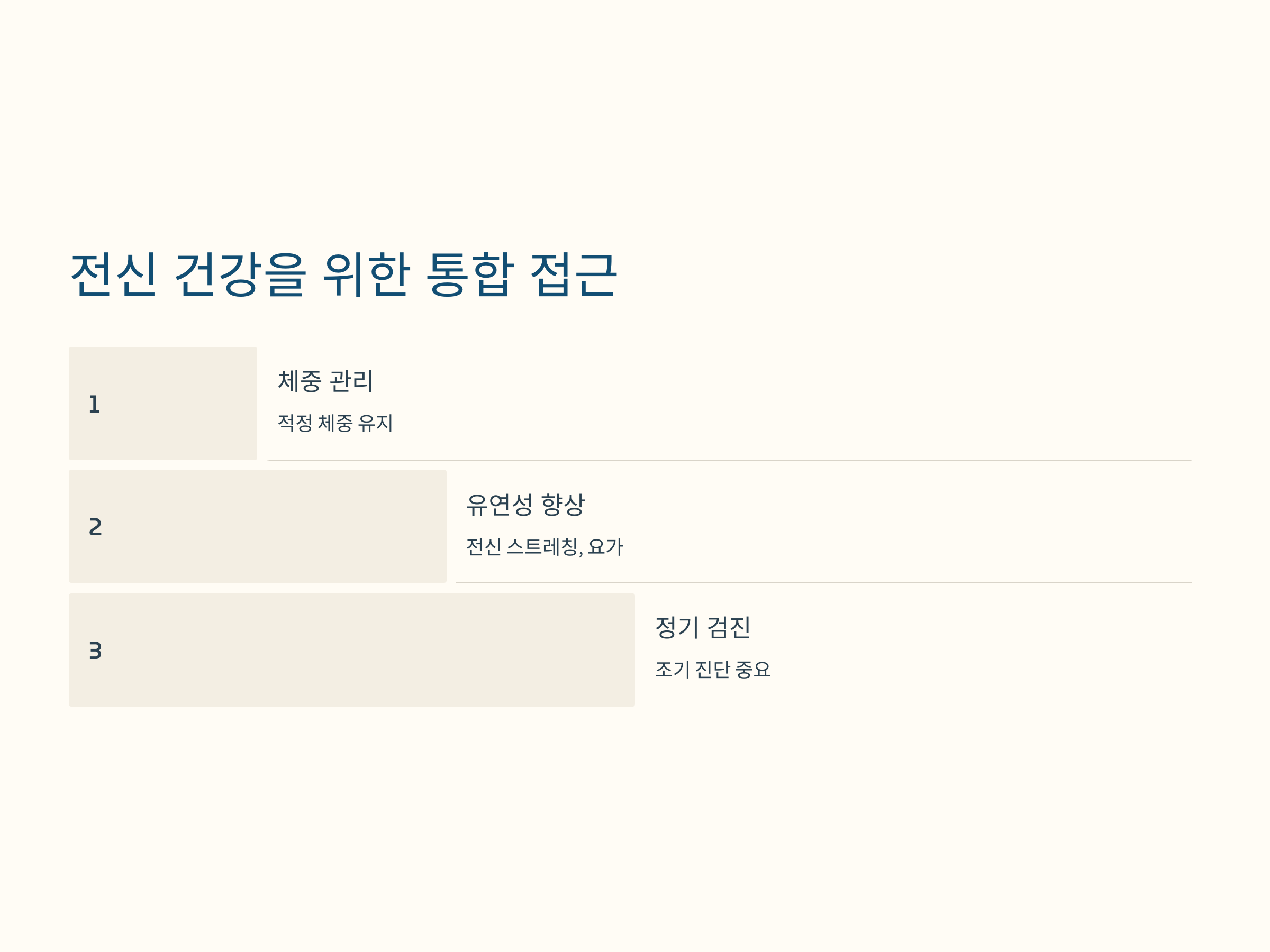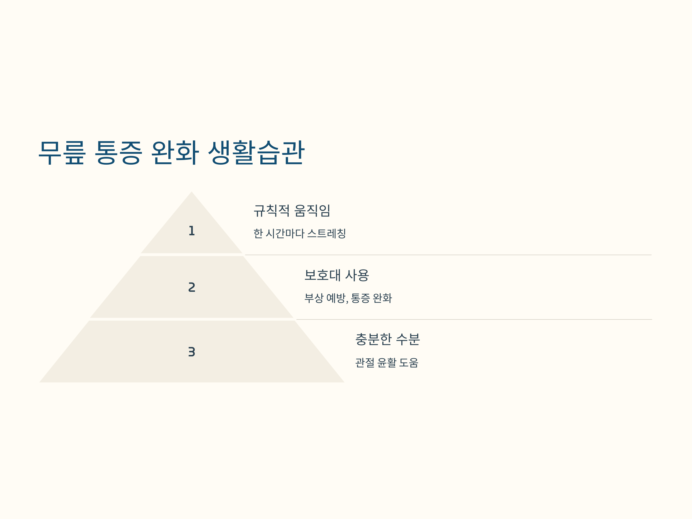 - 적당한 수분 섭취: 관절의 윤활을 돕습니다.