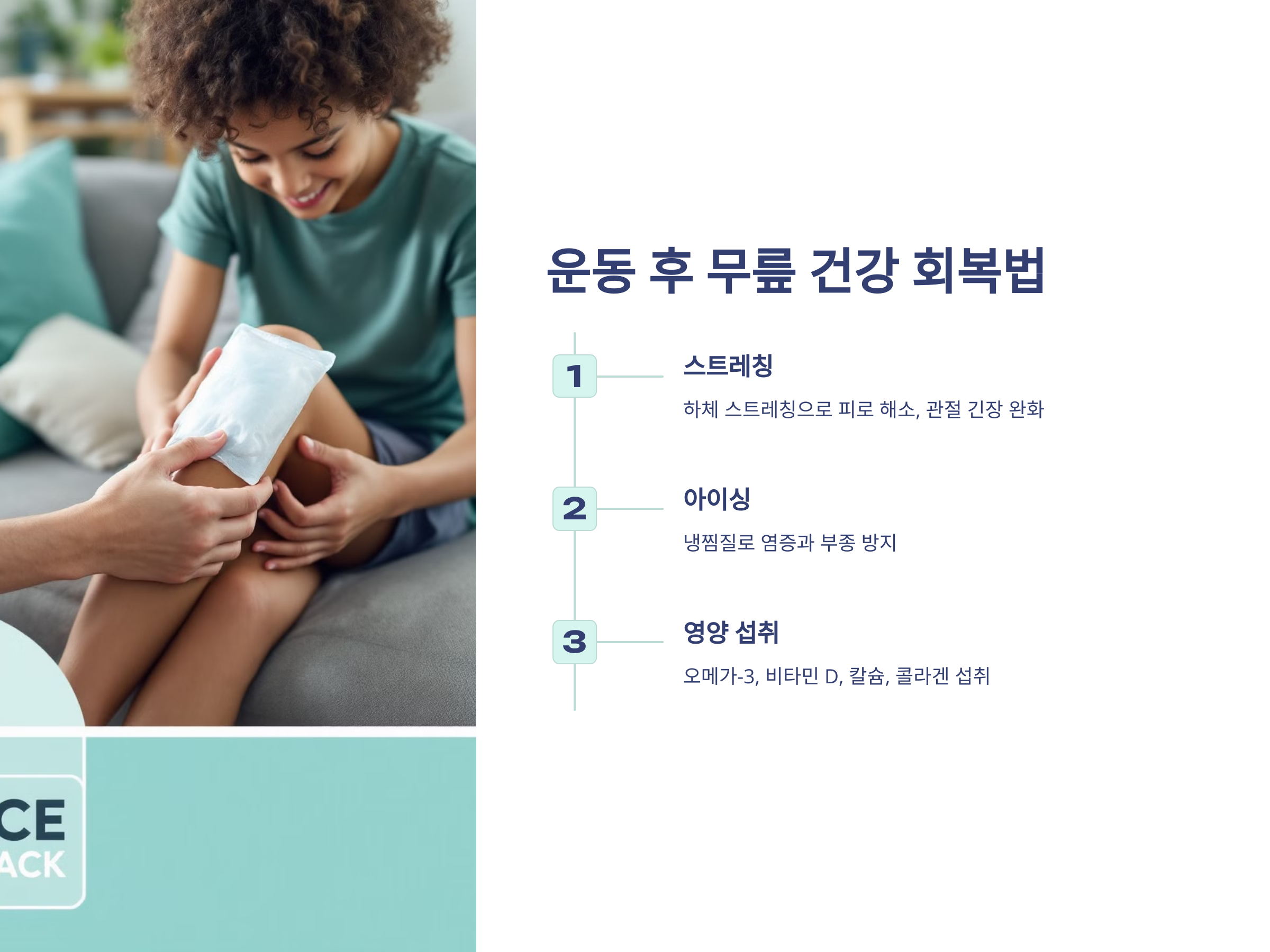 운동 후에는 회복 단계도 중요합니다. 적절한 회복이 없으면 무릎 손상이 누적될 수 있습니다.