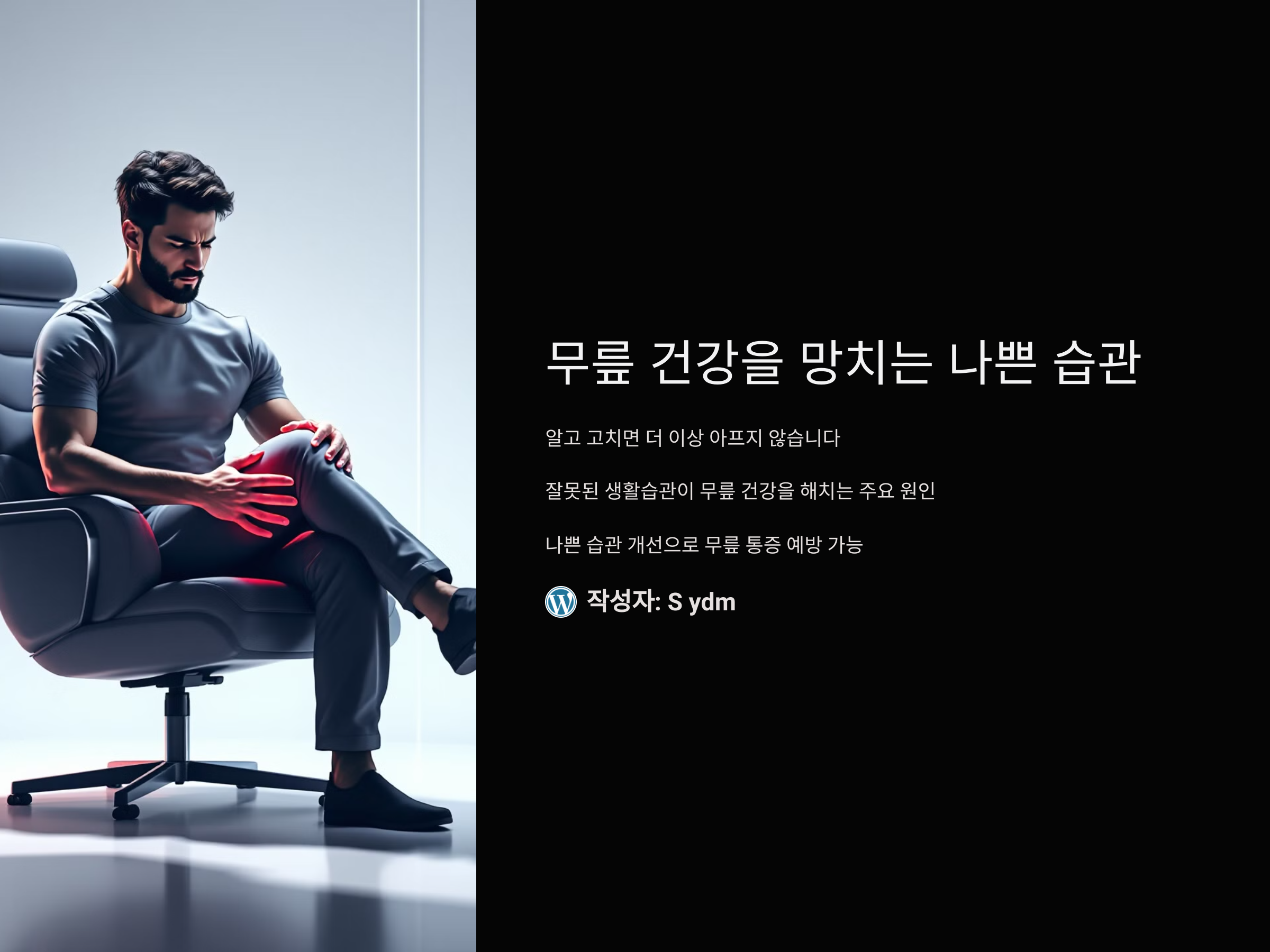 릎은 우리 몸에서 가장 자주 사용하는 관절 중 하나로, 부상이나 통증이 발생하면 일상생활에 큰 지장을 줄 수 있습니다. 특히 잘못된 생활습관은 무릎 건강을 서서히 망가뜨리는 주요 원인 중 하나로 꼽힙니다. 최근 전문가들은 무릎 통증이 단순히 노화로 인한 문제가 아니라, 반복적인 나쁜 습관에서 비롯될 수 있다고 경고합니다. 지금부터 무릎 건강을 해치는 습관들을 살펴보고, 이를 예방하고 개선하는 방법에 대해 알아보겠습니다.