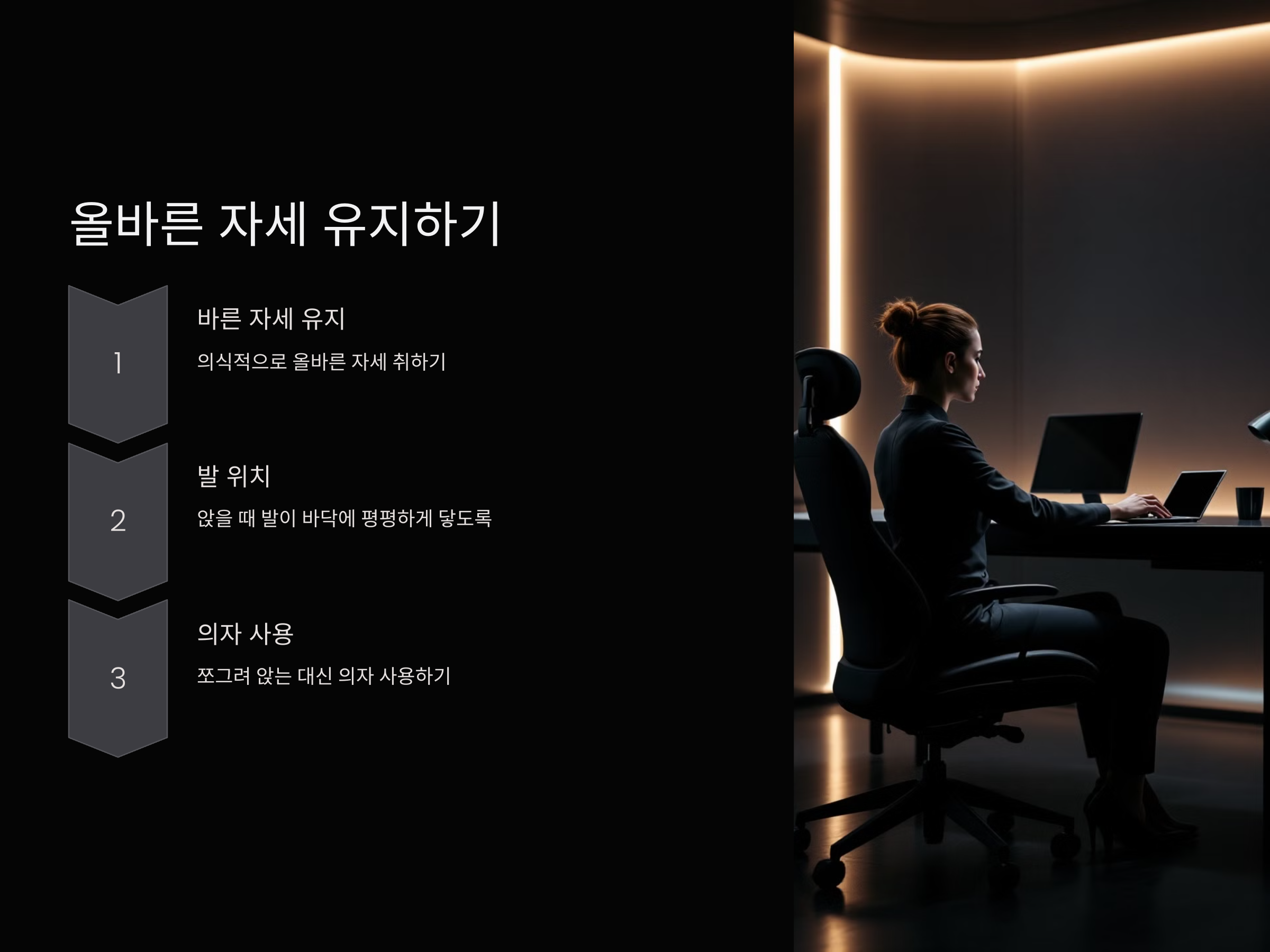 - 매일 올바른 자세를 유지하려는 노력을 합니다.