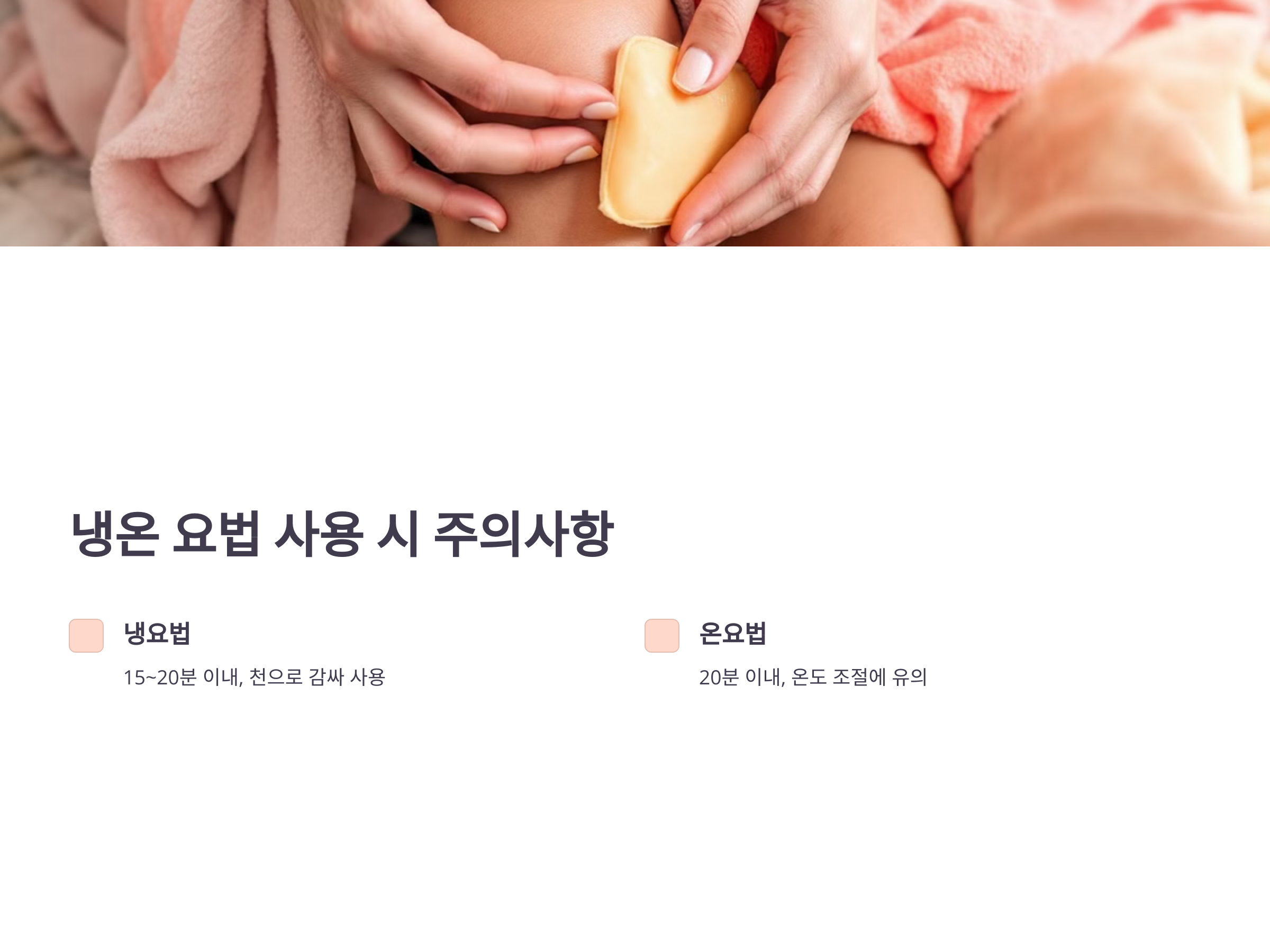 운동 중 부상 회복에 냉요법이, 장기적인 관리에 온요법이 활용됩니다.