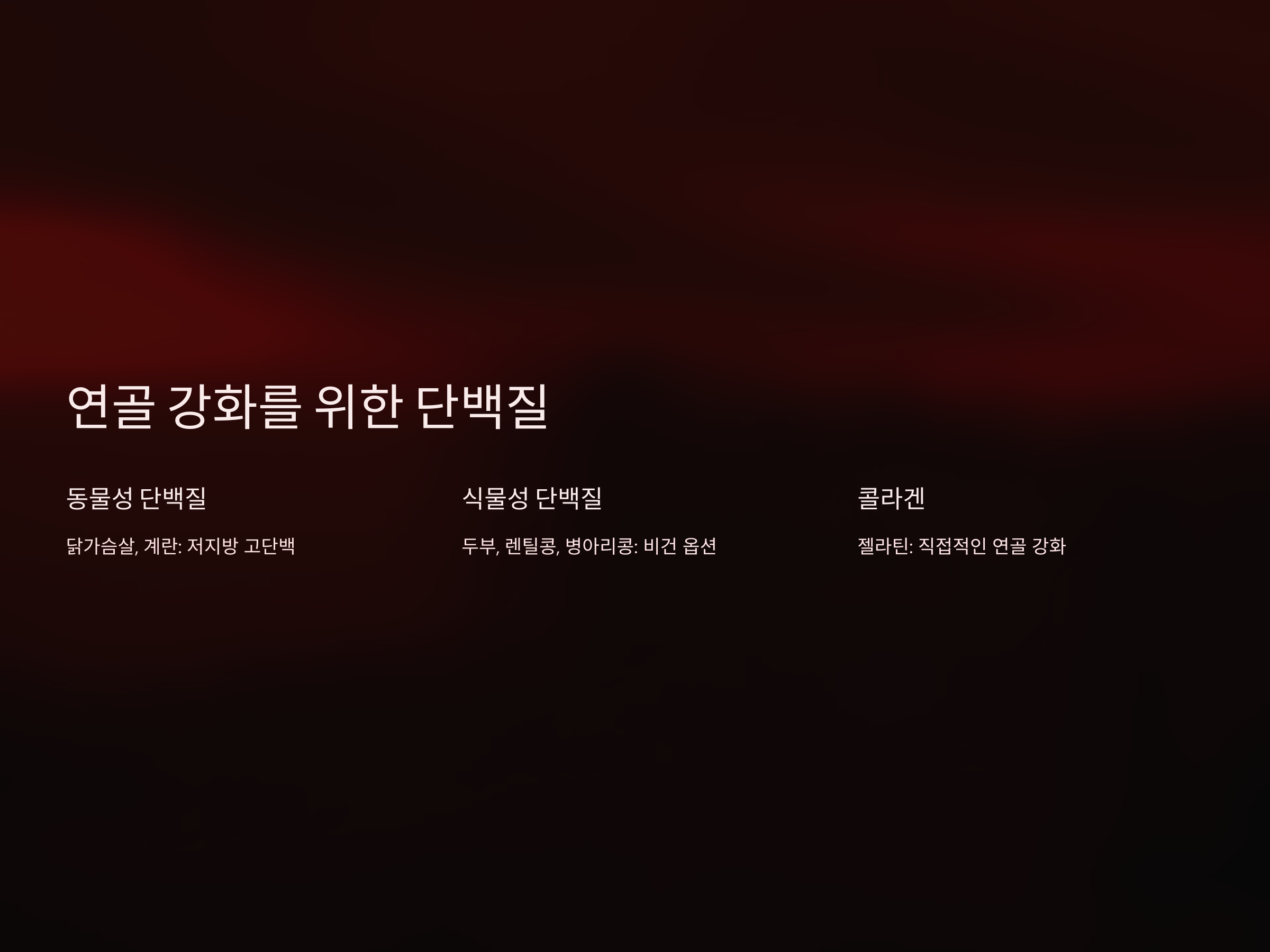 연골은 무릎 관절의 완충 역할을 하며, 손상된 연골은 재생 속도가 느립니다. 단백질은 연골 재생과 강화를 돕는 필수 영양소입니다.