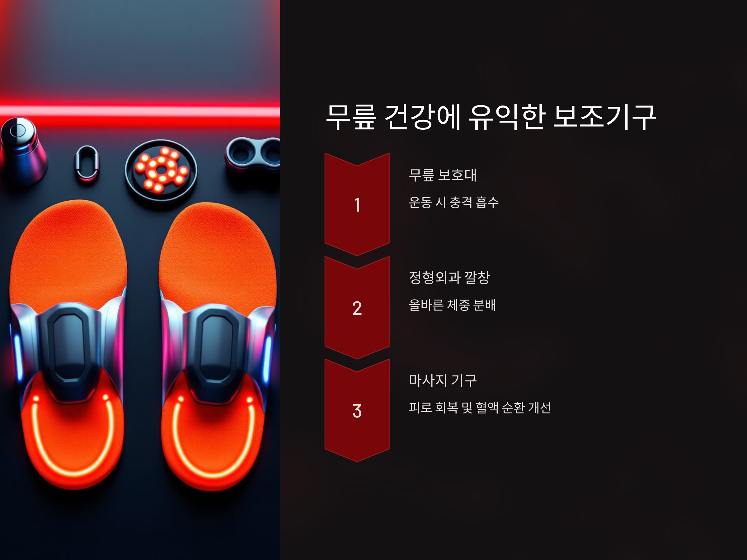 현대에는 무릎 건강을 돕는 다양한 보조기구가 있습니다. 이를 적절히 활용하면 무릎 보호와 통증 완화에 도움을 줄 수 있습니다.