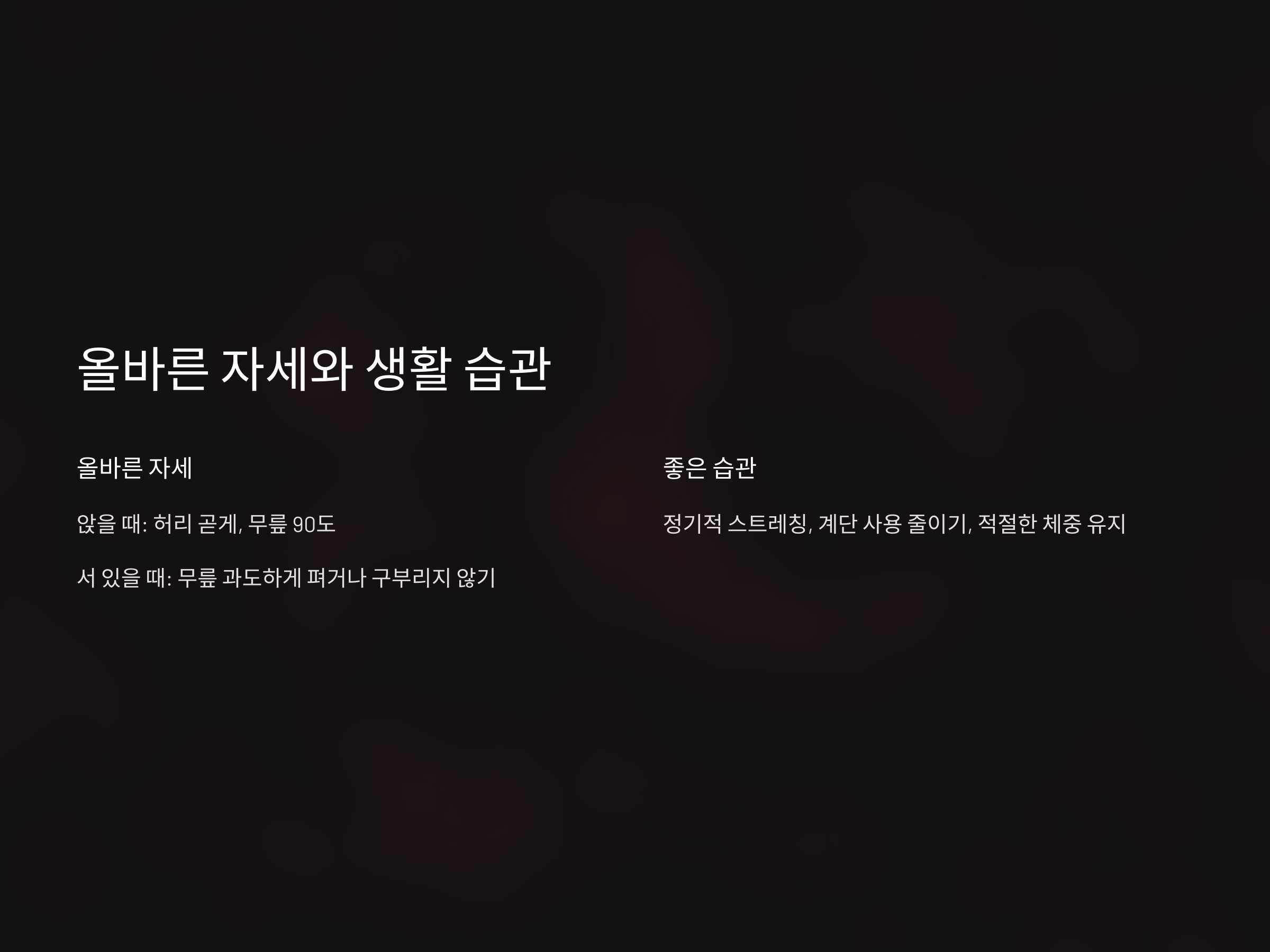 - 규칙적인 운동과 자세 교정