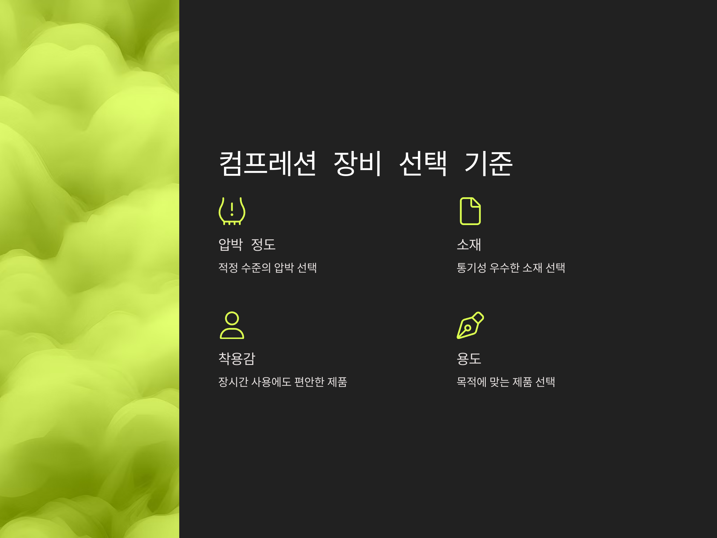 컴프레션 장비 선택 시 고려해야 할 요소