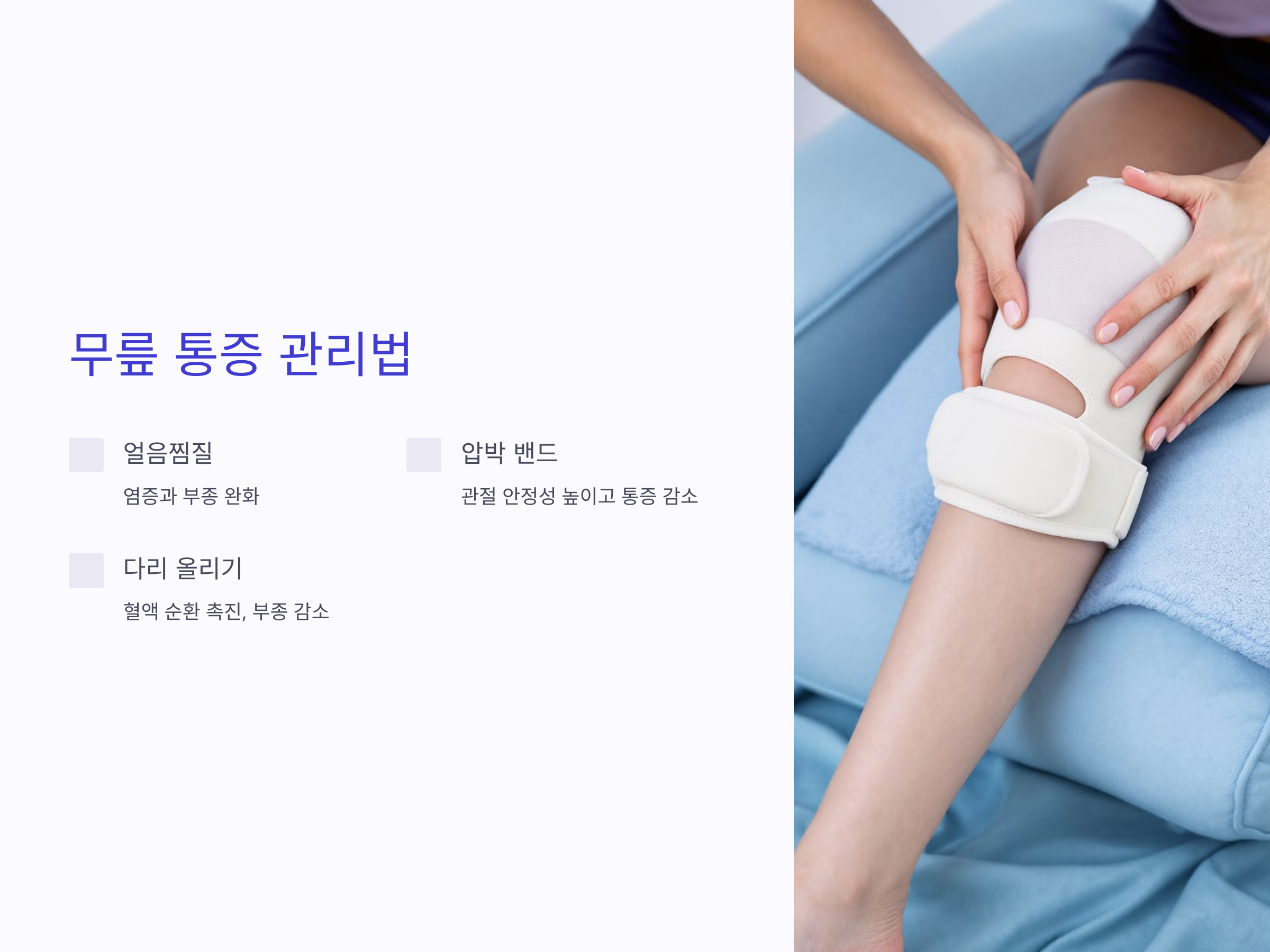 - 얼음찜질: 염증과 부종을 완화.