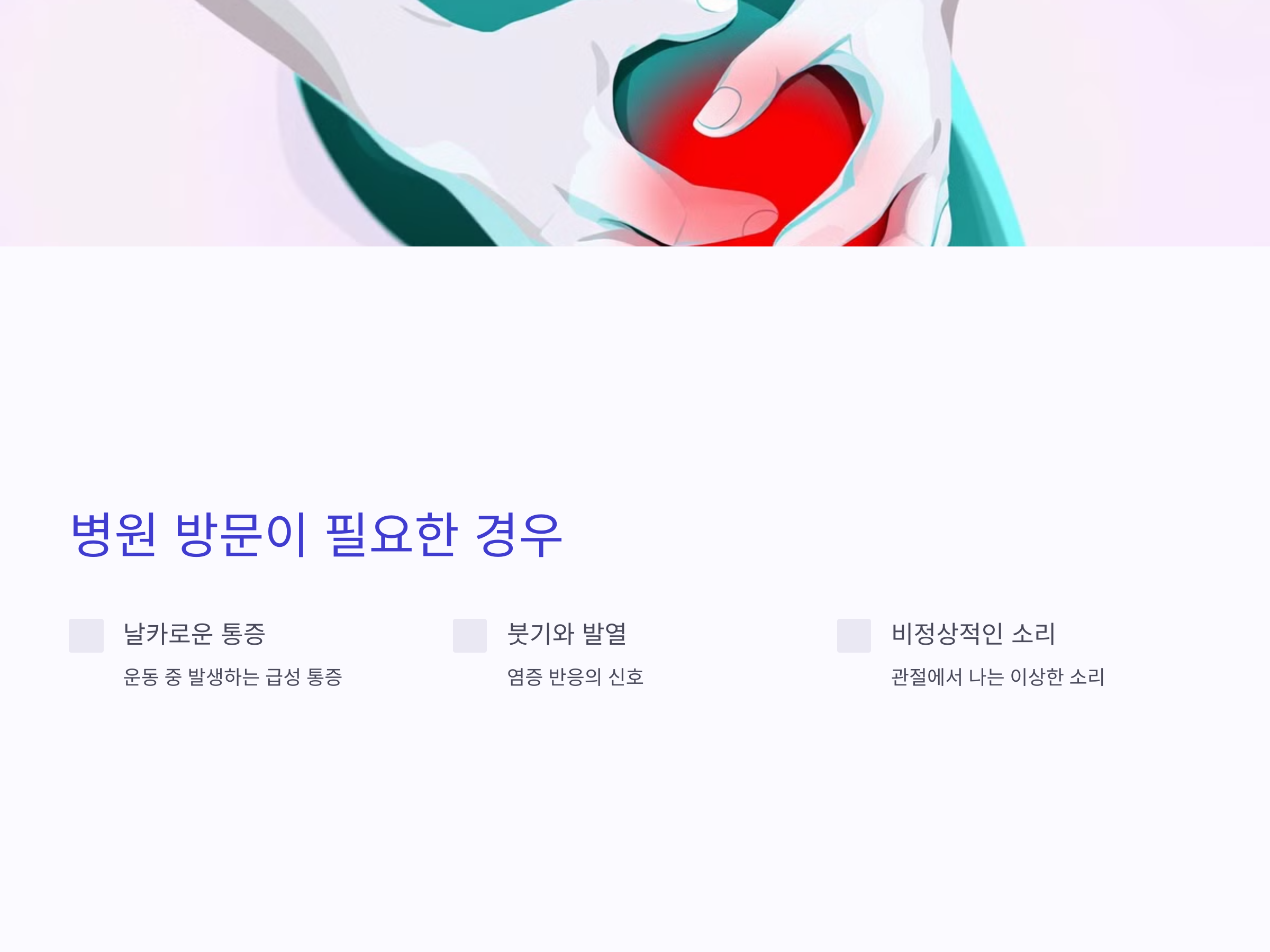 - 운동 중 날카로운 통증: 인대나 연골 손상 가능성.
