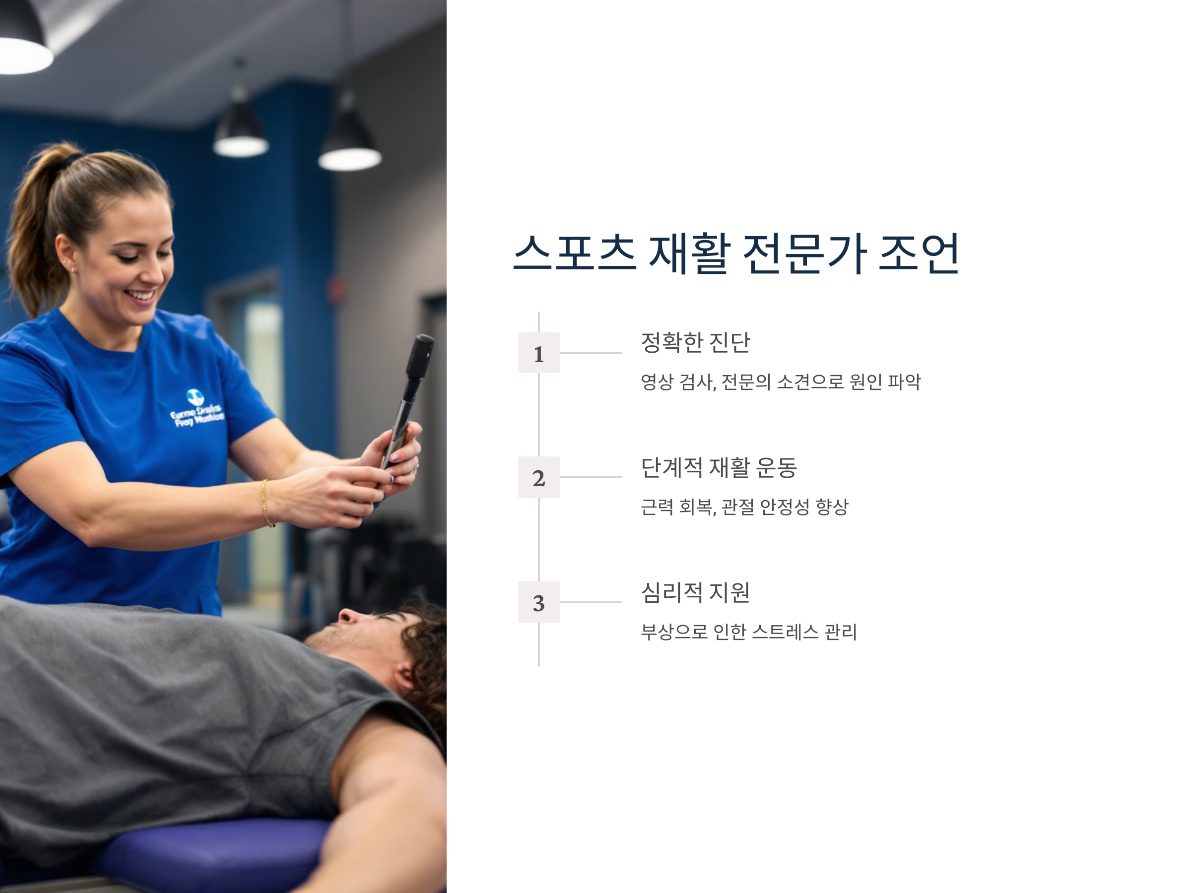 - 심리적 지원: 장기적인 부상으로 인한 스트레스를 줄이기 위한 심리 상담이 필요할 수 있습니다.