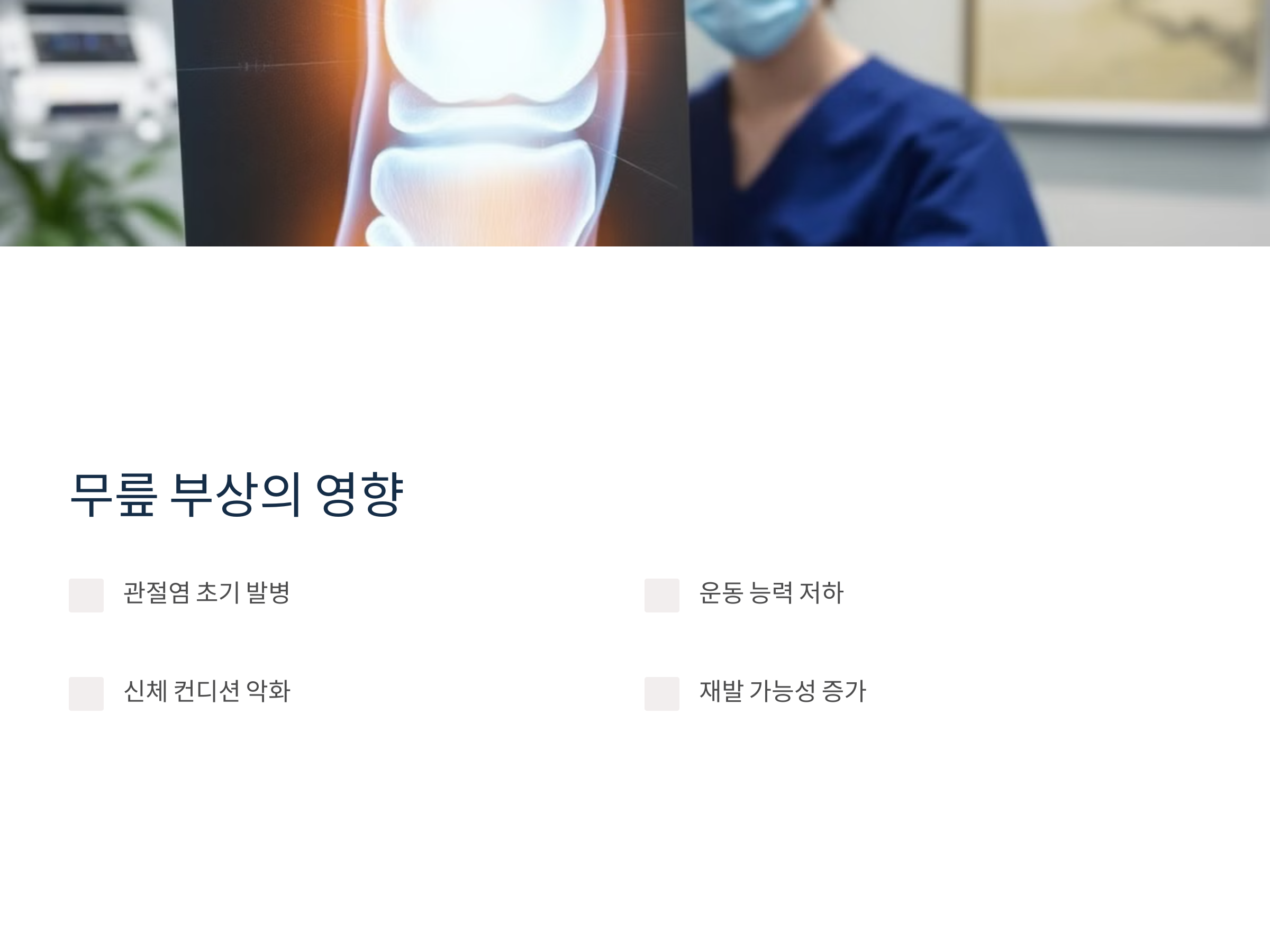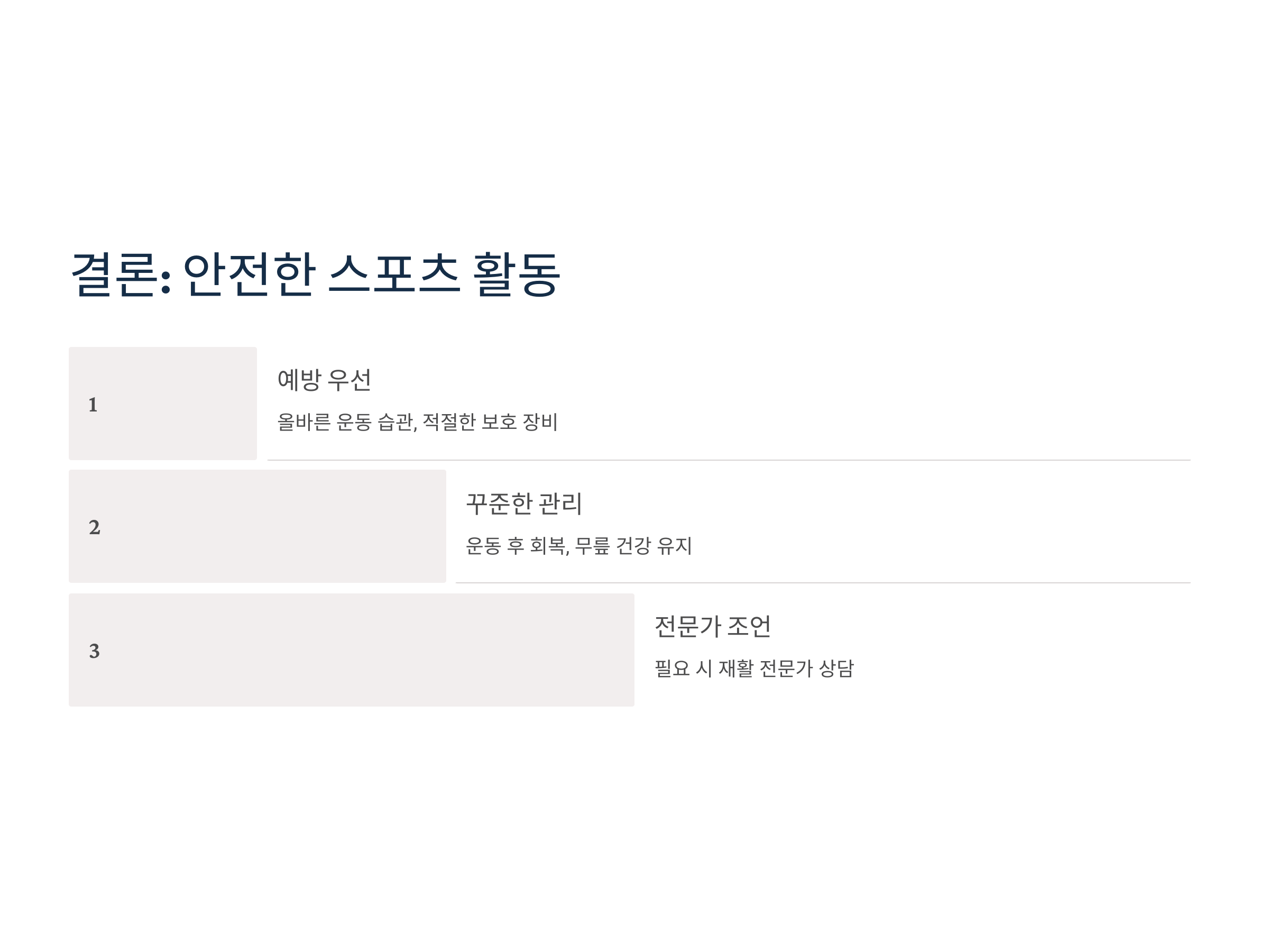 특히 스포츠에 종사하거나 규칙적으로 운동하는 사람들에게는 장기적인 경기력 저하와 운동 중단의 원인이 될 수 있어, 예방과 관리는 필수적입니다.