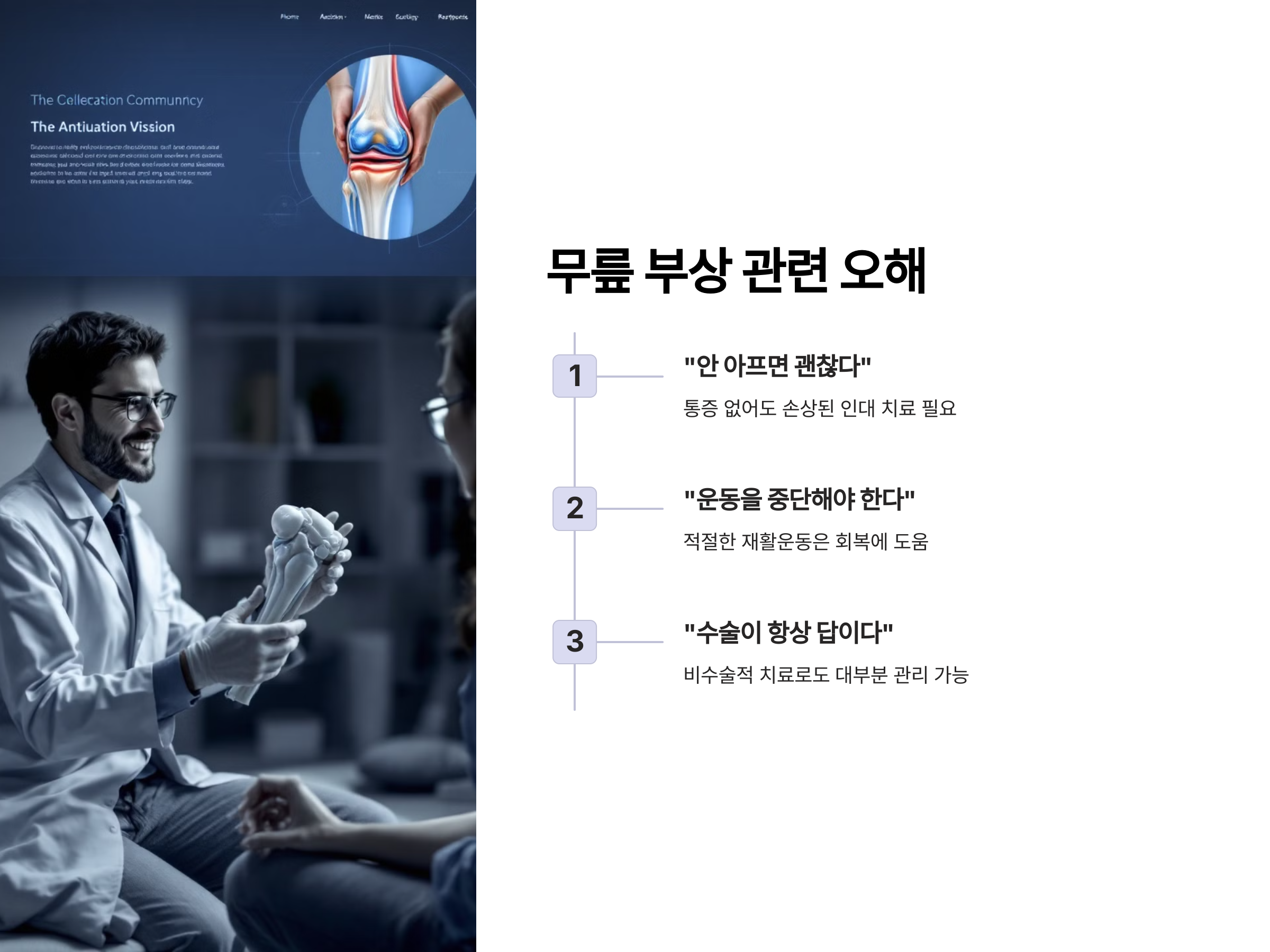 무릎 부상에 대해 흔히 잘못 알고 있는 내용들은 다음과 같습니다: