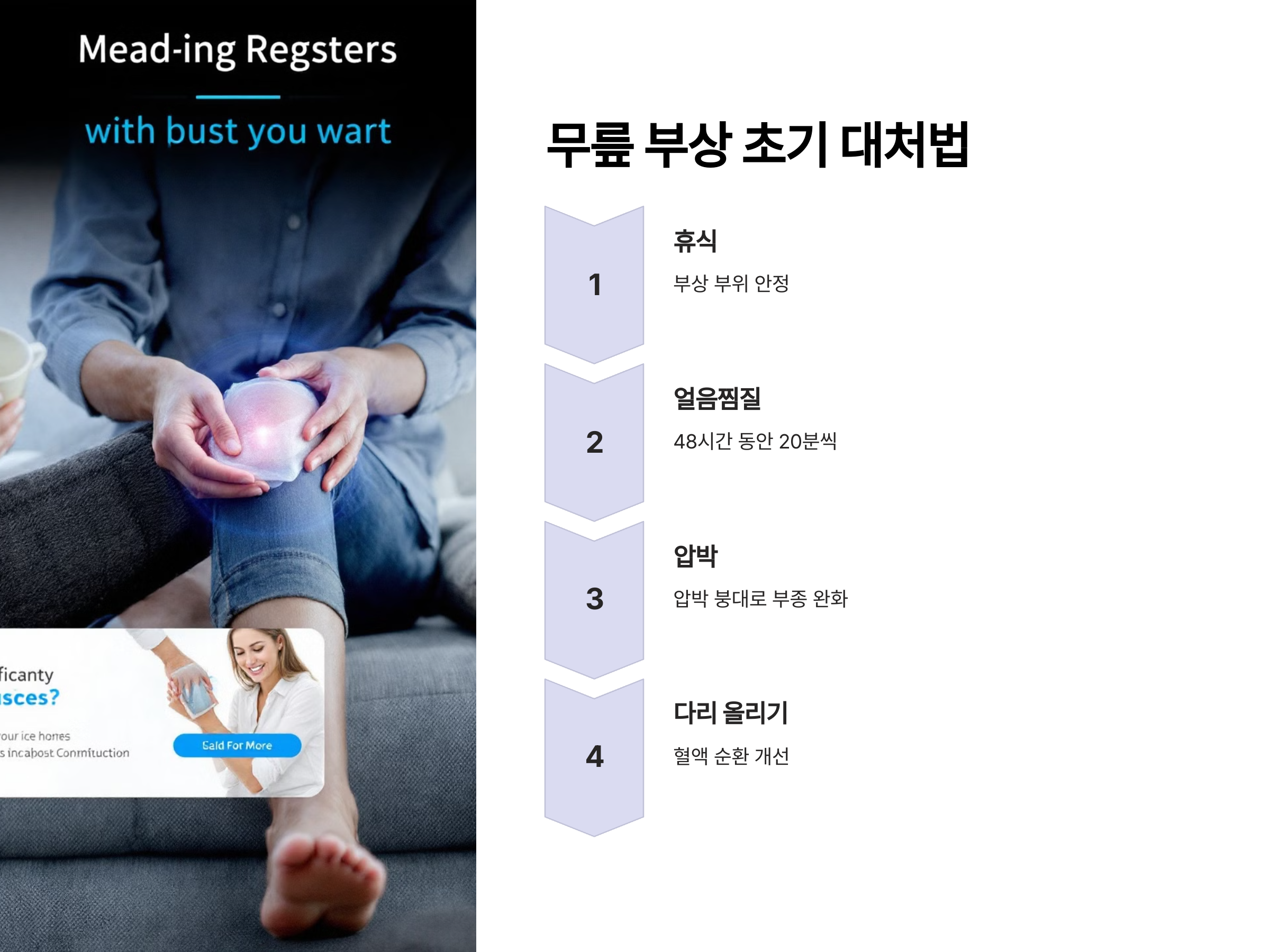 무릎 부상 시 즉각적인 대처가 회복 속도와 결과에 큰 영향을 미칩니다. 다음은 기본적인 초기 대처법입니다: