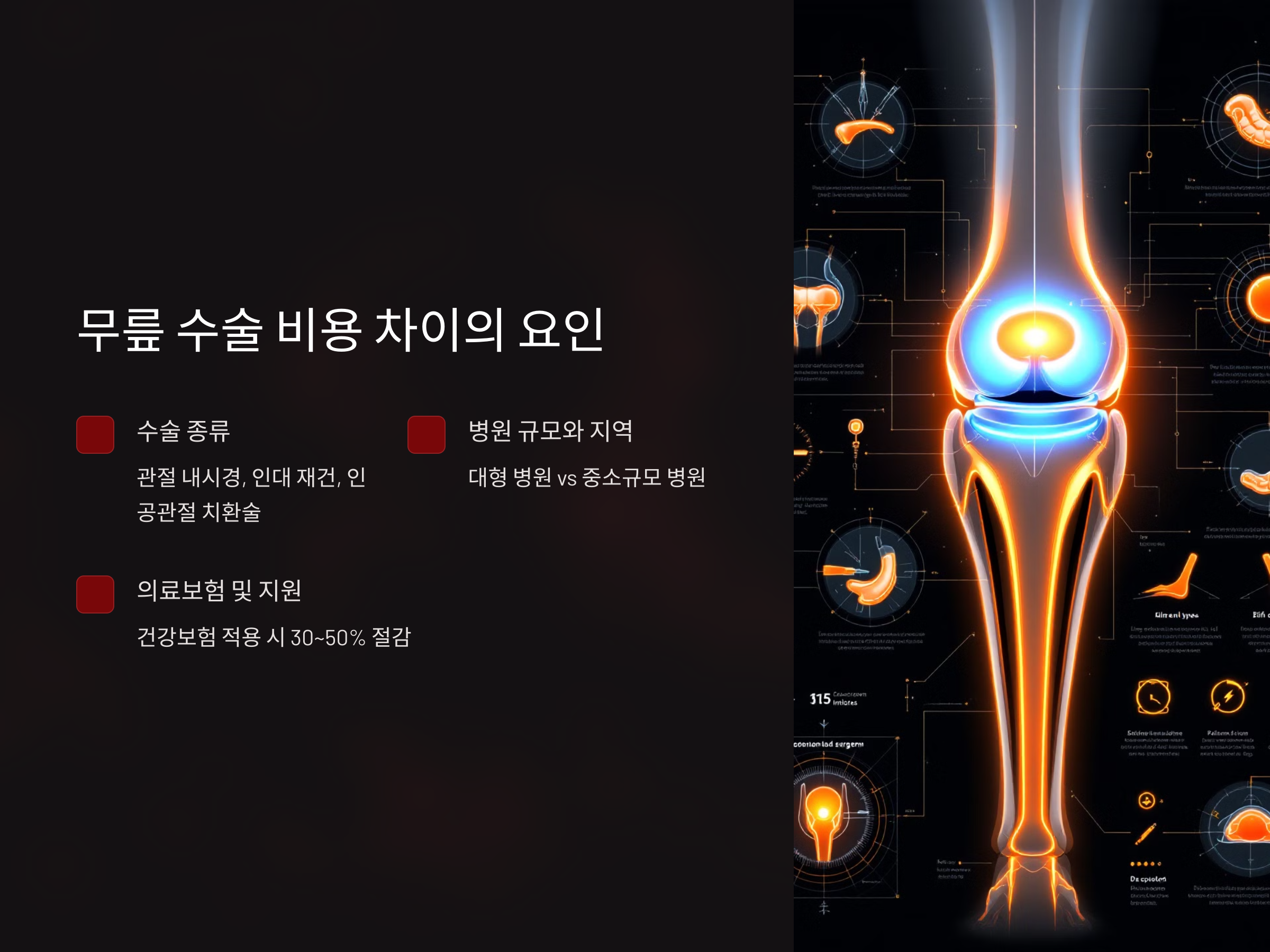 무릎 수술 비용은 다음과 같은 요인들로 인해 크게 차이가 납니다: