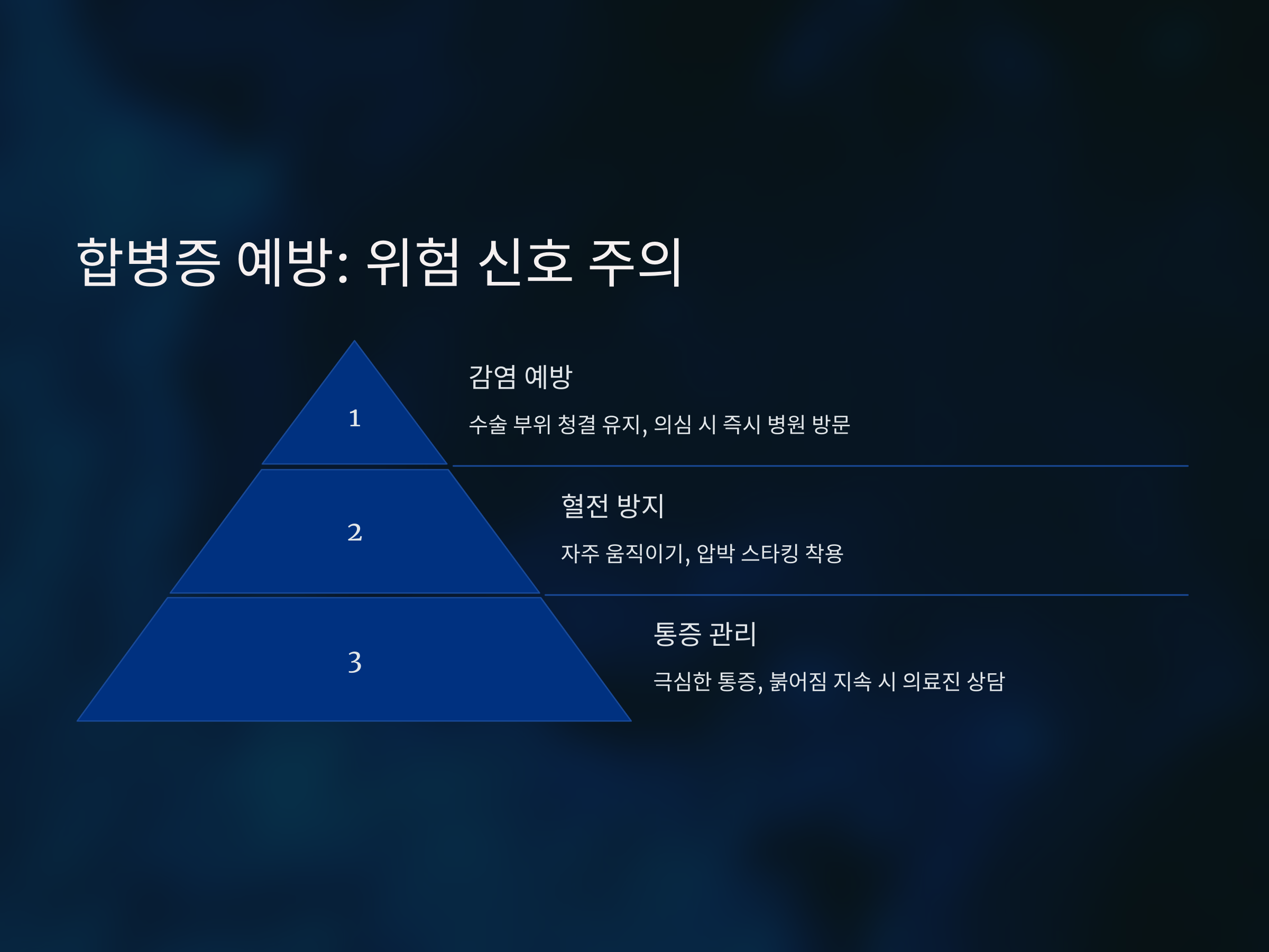 수술 후 초기 단계는 가장 민감한 시기로, 적절한 관리가 빠른 회복의 열쇠입니다.