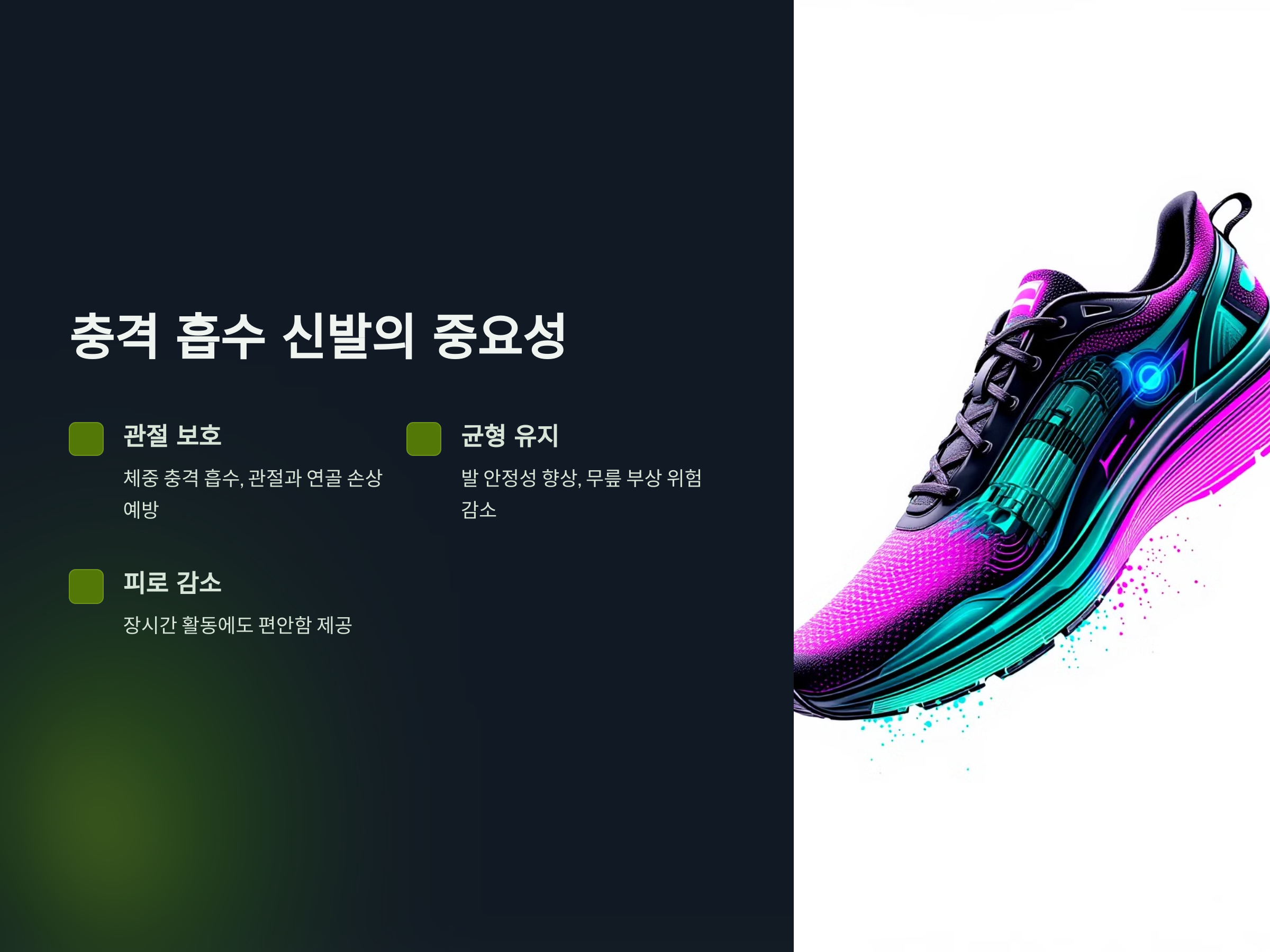 릎은 우리의 체중을 지탱하며 매일 많은 부담을 받습니다. 잘못된 신발을 신을 경우 무릎 통증은 물론이고 관절염 위험도 높아질 수 있습니다. 특히 장시간 서 있거나 걷는 사람들, 스포츠 활동을 즐기는 이들에게 충격 흡수 신발은 필수 아이템으로 자리 잡았습니다. 이 글에서는 무릎 건강을 위한 충격 흡수 신발의 중요성과 선택 팁을 알려드립니다.