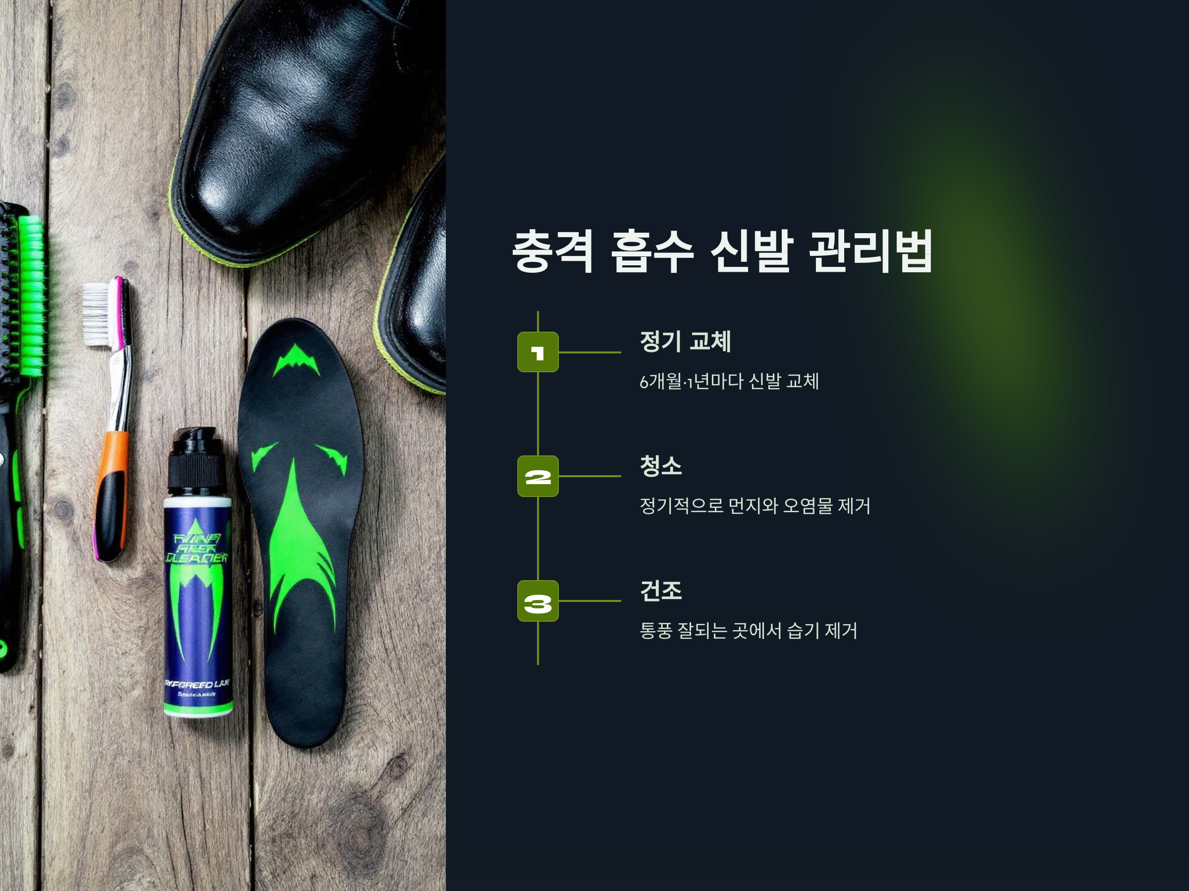 신발의 수명을 늘리고 효과를 유지하려면 올바른 관리가 필요합니다. 정기적인 점검과 관리는 무릎 건강 유지의 비결입니다.