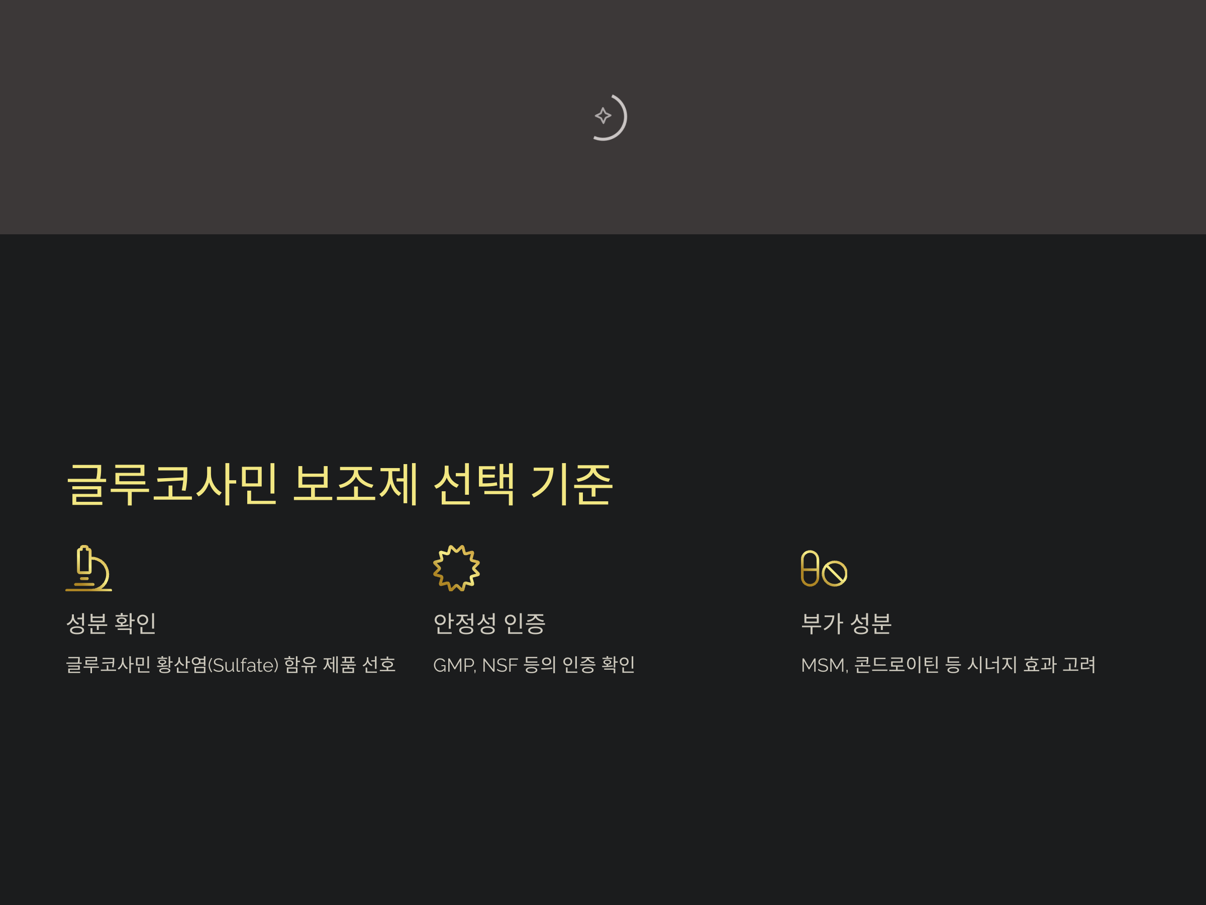 - 성분 확인: 글루코사민 황산염(Sulfate)이 함유된 제품이 더 효과적일 수 있습니다.