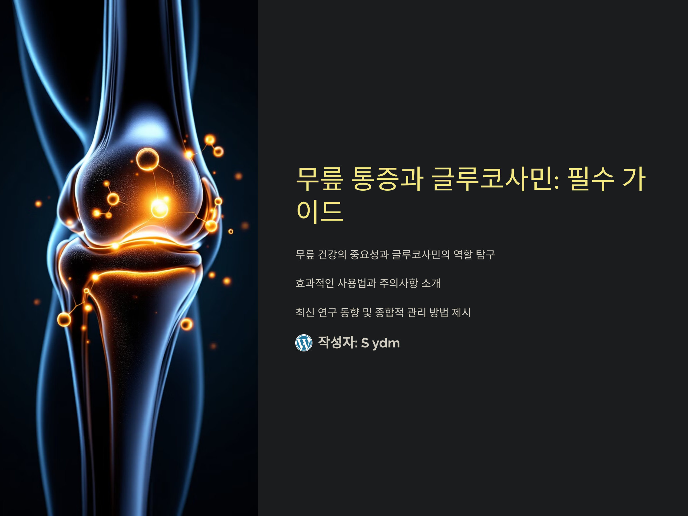 릎은 우리 몸에서 가장 중요한 관절 중 하나로, 움직임의 핵심 역할을 합니다. 하지만 나이가 들거나 무리한 운동, 잘못된 자세로 인해 무릎 건강이 손상되기 쉽습니다. 이에 따라 많은 사람들이 관절 건강 보조제로 글루코사민을 찾고 있는데요. 이 성분은 관절 건강에 효과적이라는 평가를 받으며 주목받고 있지만, 과학적 근거와 올바른 사용법에 대한 명확한 정보가 필요합니다. 이 글에서는 글루코사민의 효능, 복용 방법, 그리고 부작용 등을 심도 있게 알아봅니다.