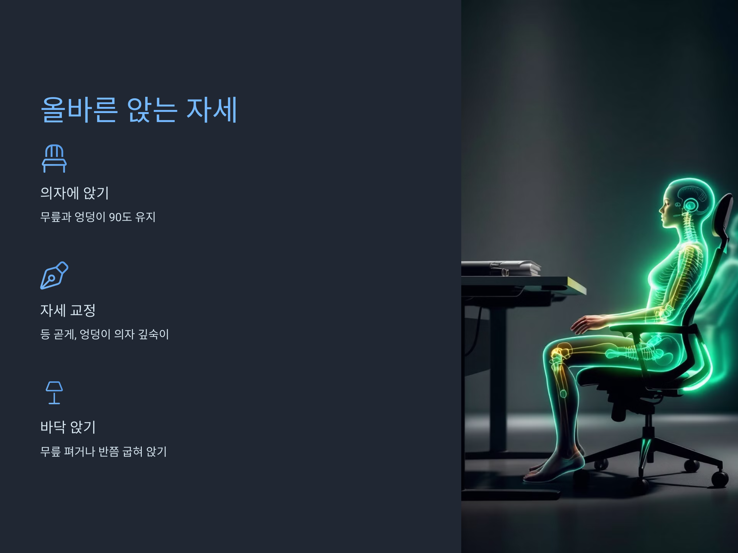 환경 조정만으로도 자세와 무릎 건강을 개선할 수 있습니다.