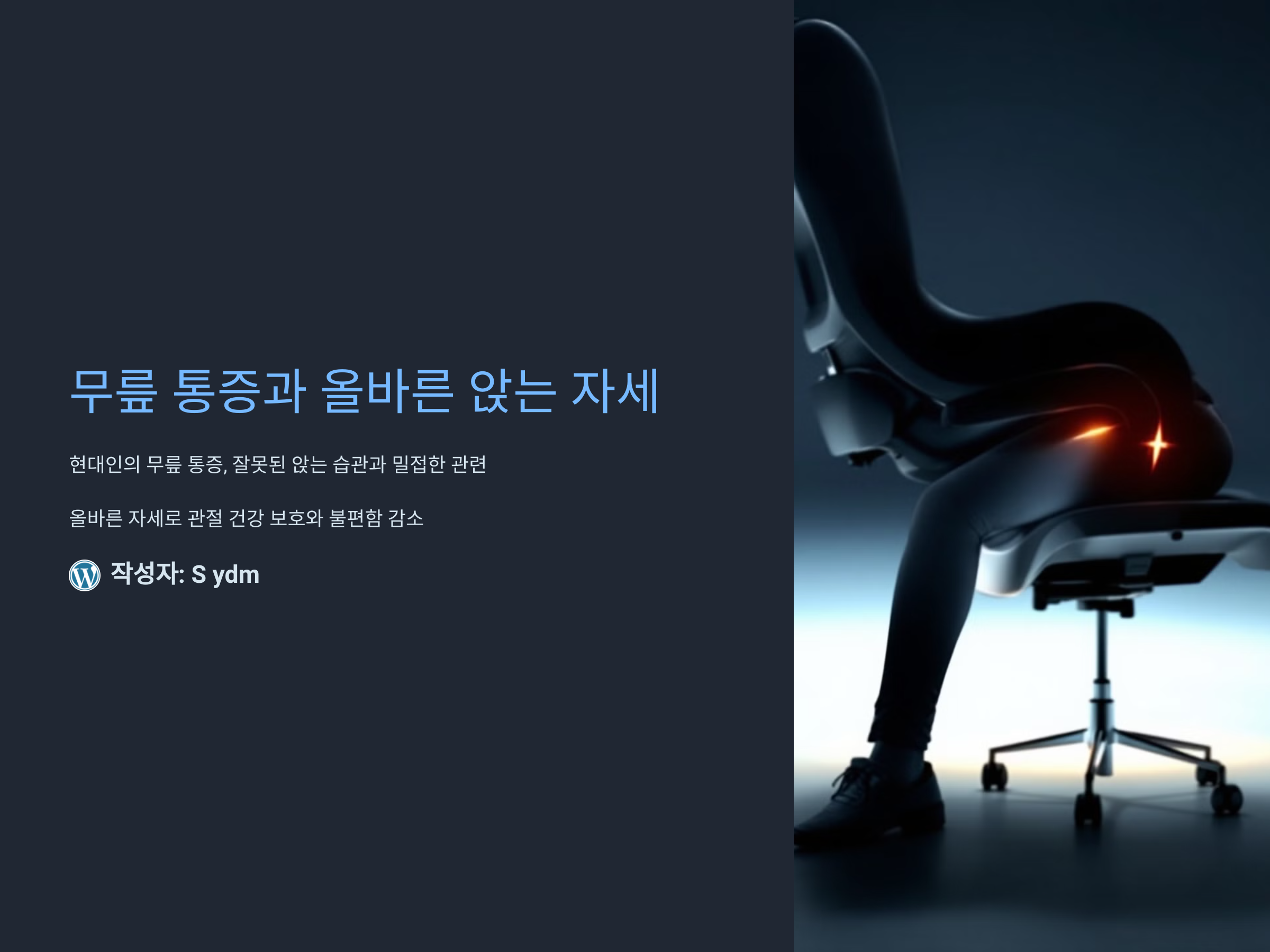 대인의 생활에서 무릎 통증은 나쁜 자세와 밀접한 관련이 있습니다. 잘못된 앉는 습관이 무릎 관절에 압력을 가해 장기적으로 통증을 유발하거나 상태를 악화시킬 수 있습니다. 올바른 자세를 유지하면 관절 건강을 보호하고 불편함을 줄이는 데 도움이 됩니다. 지금부터 무릎 통증의 원인과 이를 개선할 수 있는 올바른 자세와 방법에 대해 알아보겠습니다.