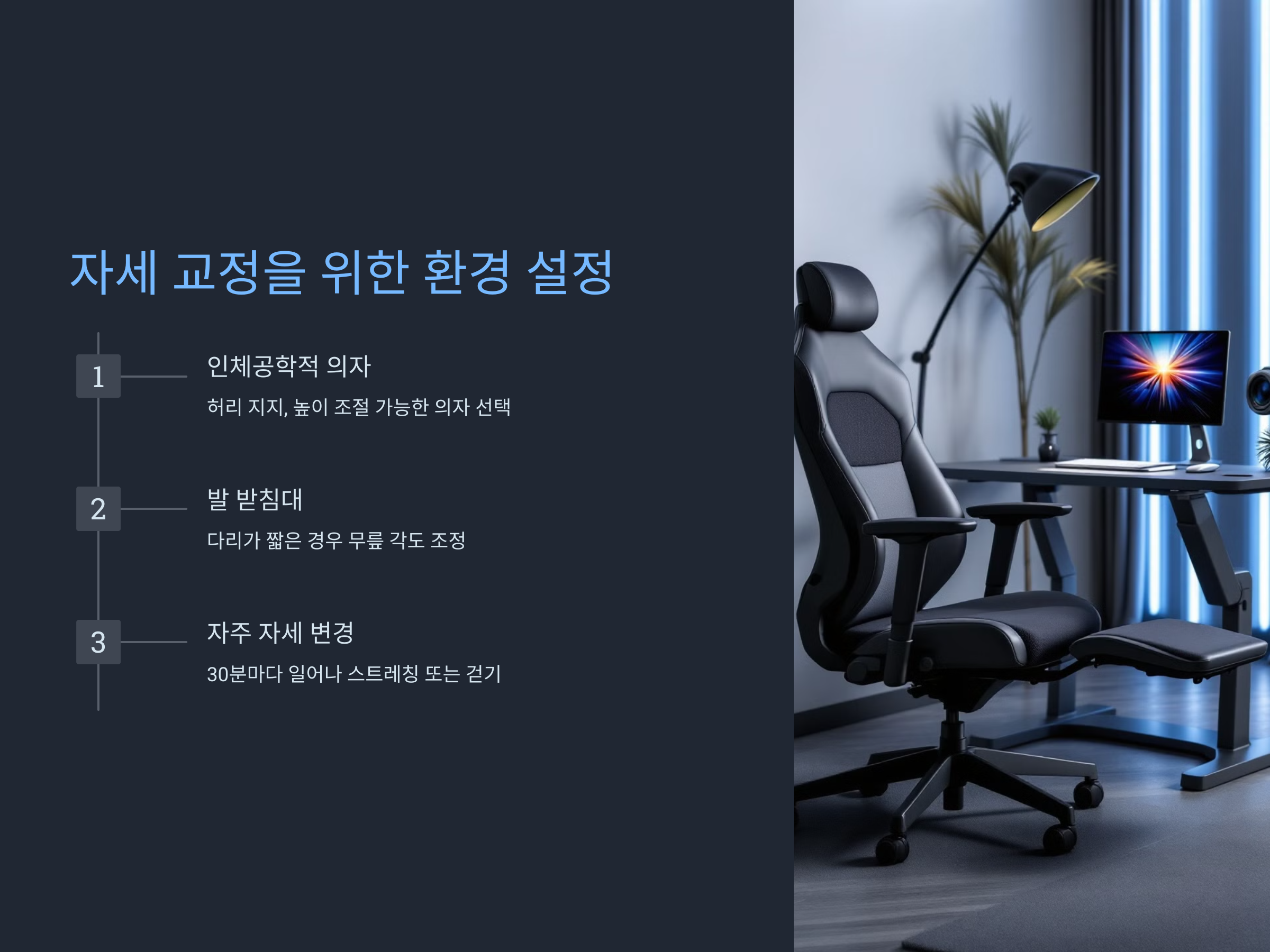 1. 인체공학적 의자 사용