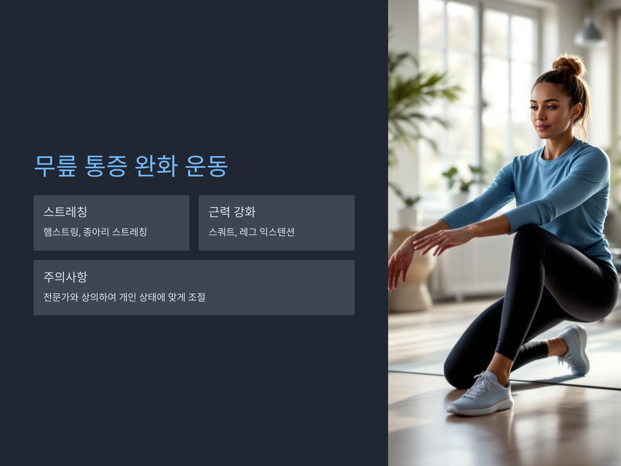 무릎 통증이 있거나 예방을 원한다면, 스트레칭과 운동이 큰 도움이 됩니다. 무릎 주변 근육을 강화하고 유연성을 높이는 방법을 알아보세요.