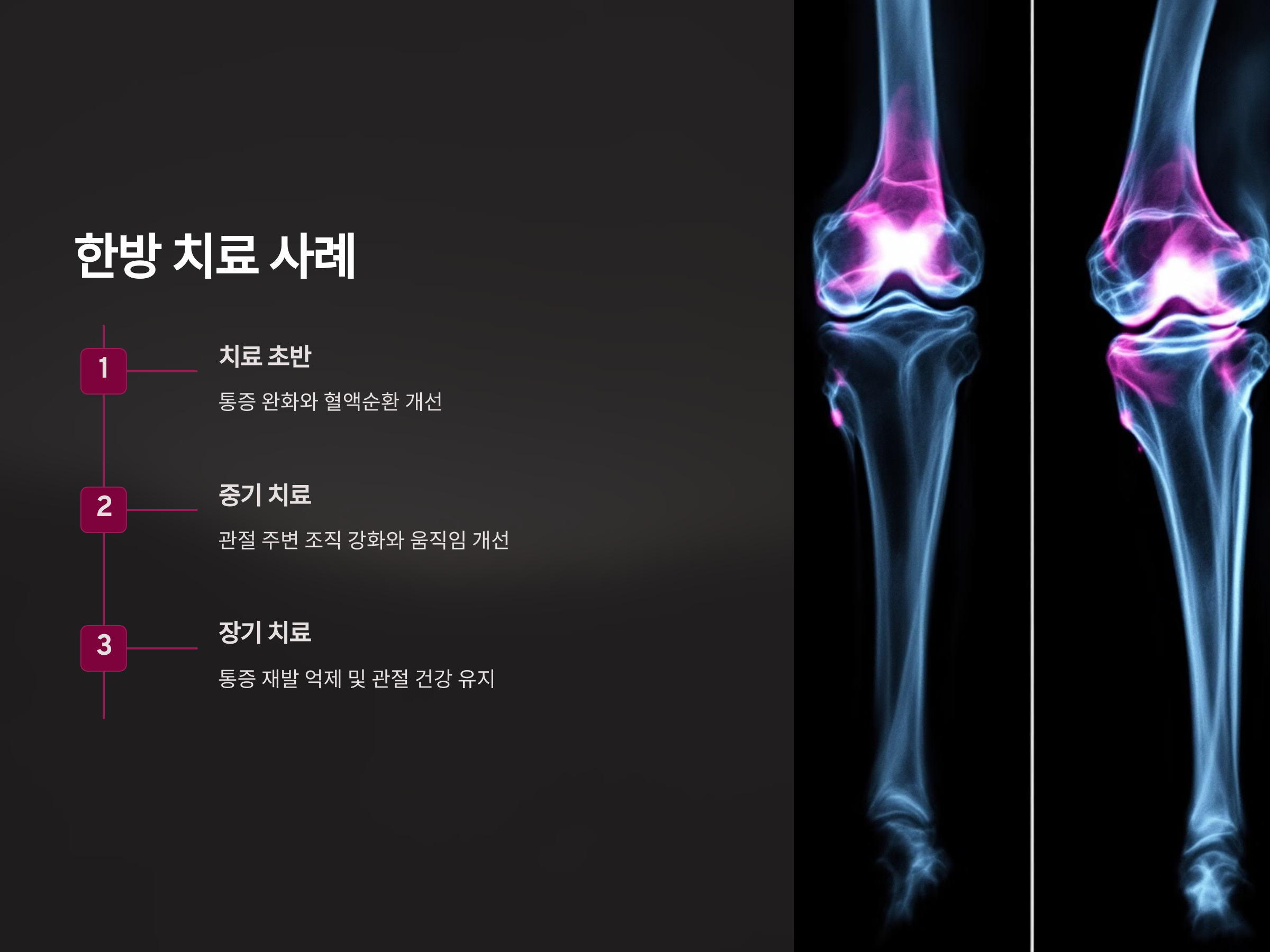 - 장기 치료: 통증 재발 억제 및 관절 건강 유지.