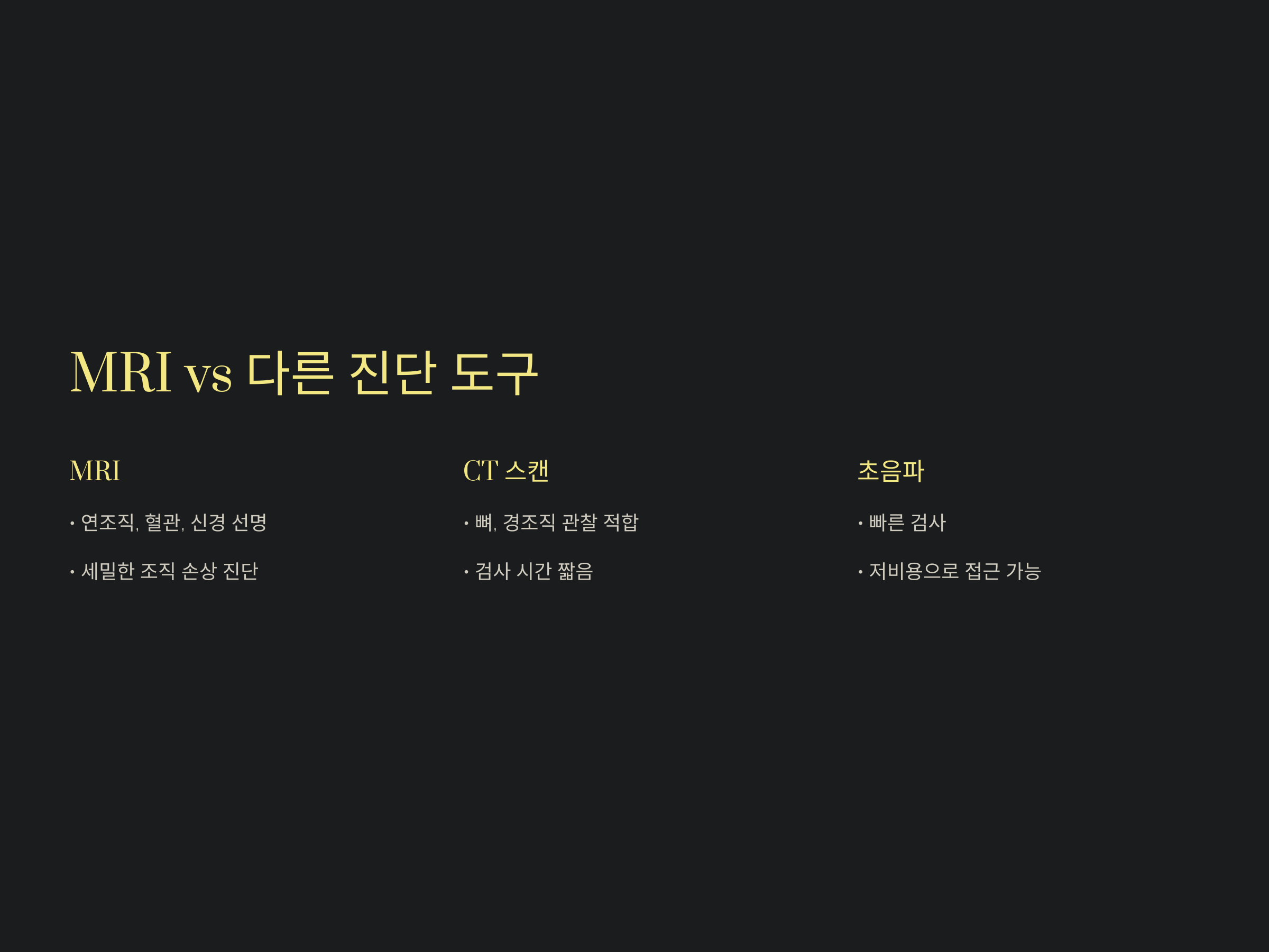 MRI 외에도 초음파, CT 스캔 등 다양한 진단 방법이 있습니다.