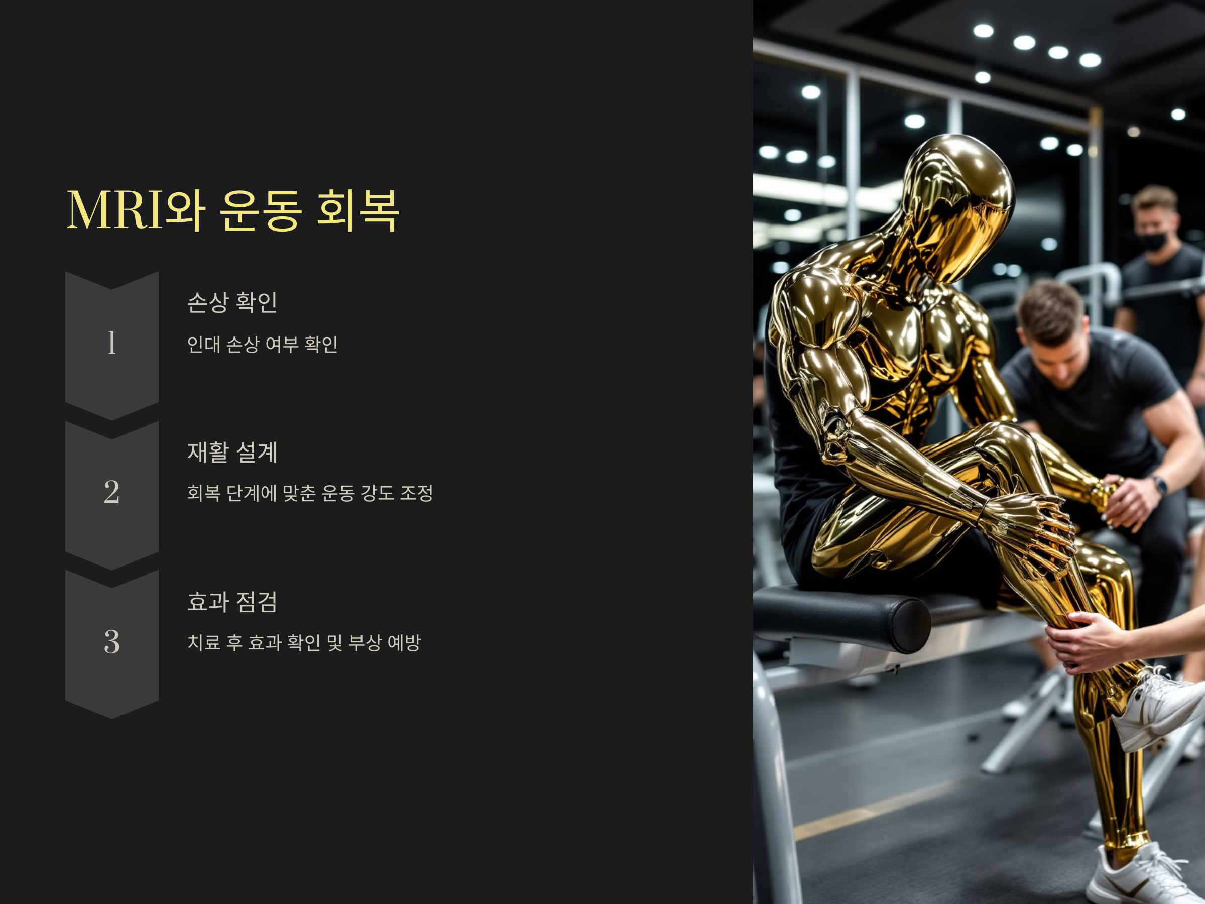 MRI 검사 결과는 운동 재활 및 회복 과정에서도 중요한 기준이 됩니다.