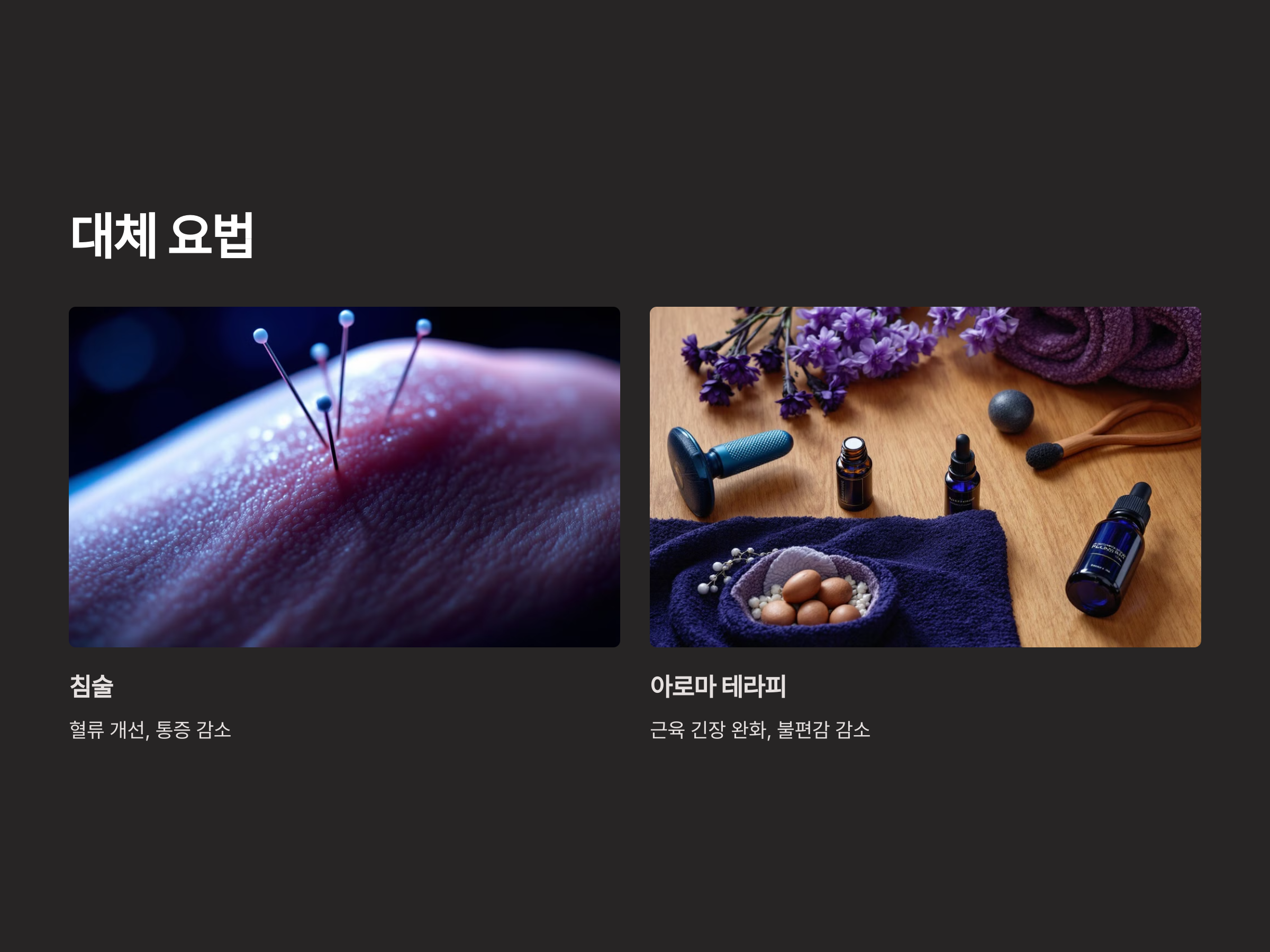 라벤더나 페퍼민트 오일을 사용한 마사지 요법은 근육 긴장을 완화하고 낭종 부위의 불편감을 줄이는 데 도움을 줍니다.