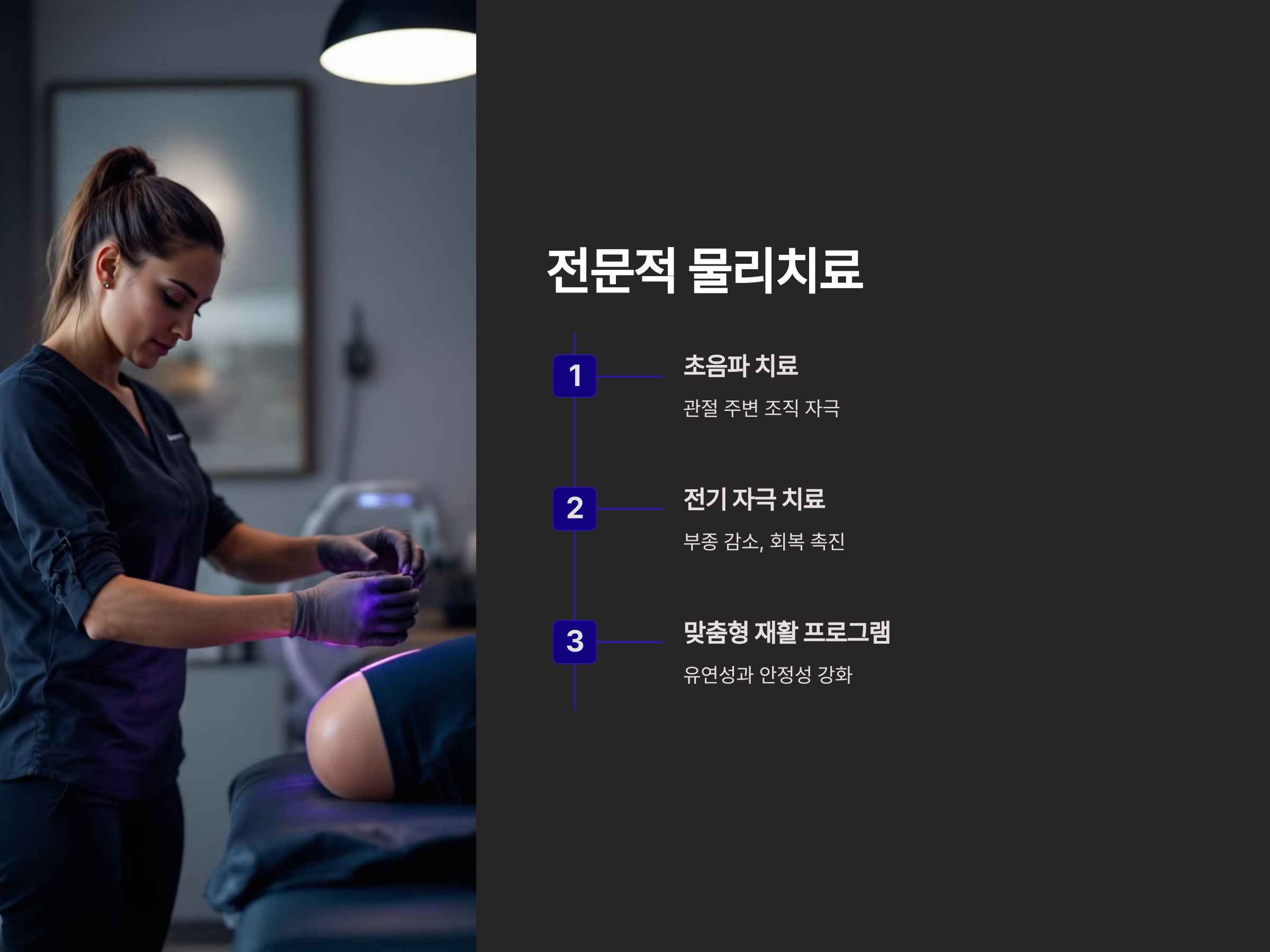 물리치료는 베이커 낭종으로 인한 통증과 부종을 관리하는 데 중요한 역할을 합니다. 초음파 치료나 전기 자극 치료는 관절 주변 조직을 자극해 부종을 줄이고 회복을 돕습니다.
