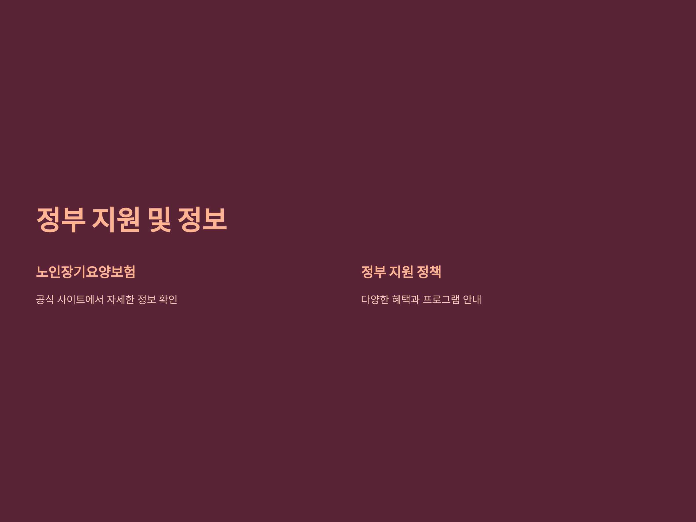 - 국가 지원 프로그램 활용: 노인장기요양보험, 기초연금 등 지원 제도를 최대한 활용하세요.