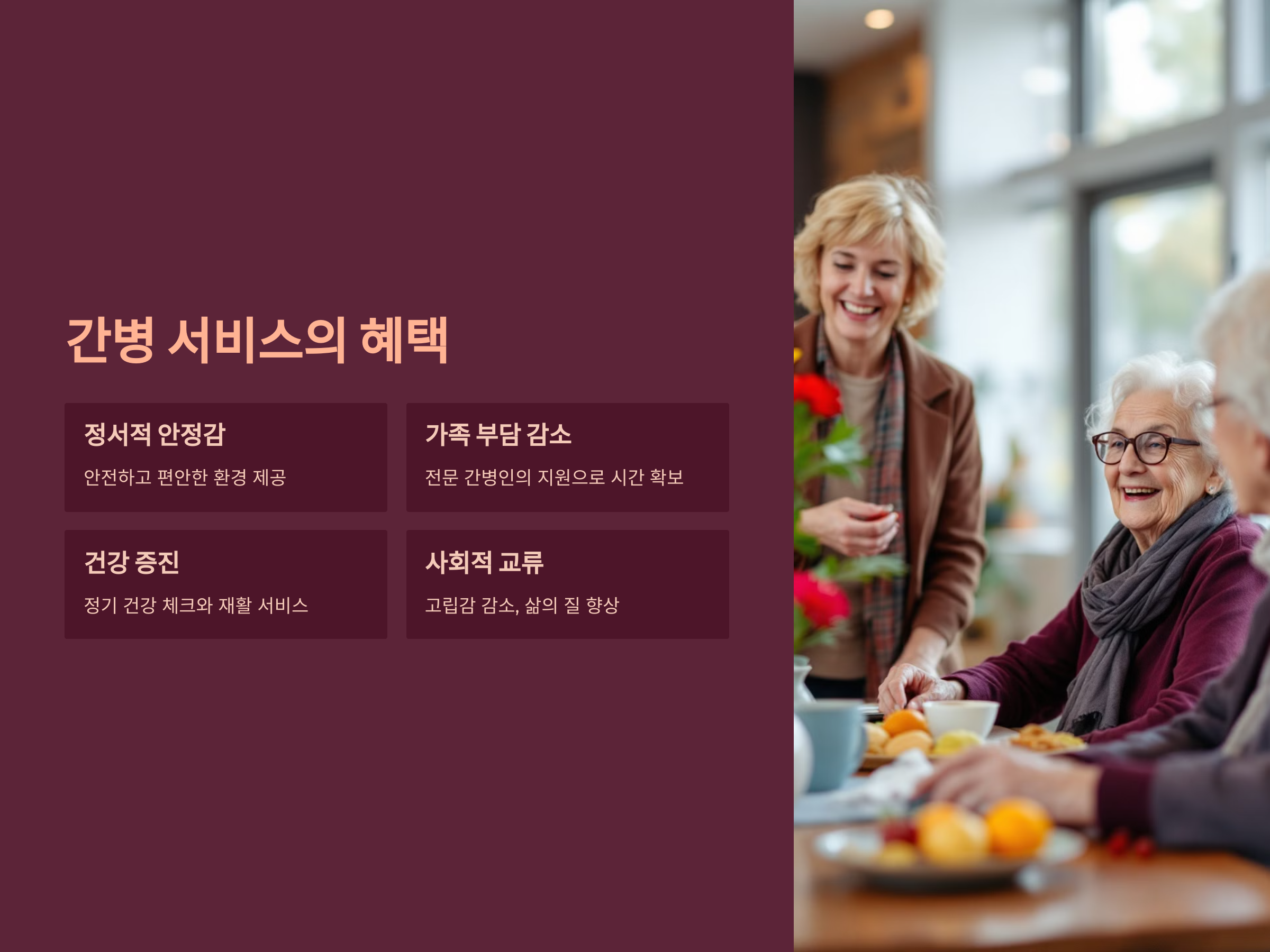 올바른 간병 서비스를 선택하면 시니어와 가족 모두에게 여러 가지 혜택을 제공합니다.