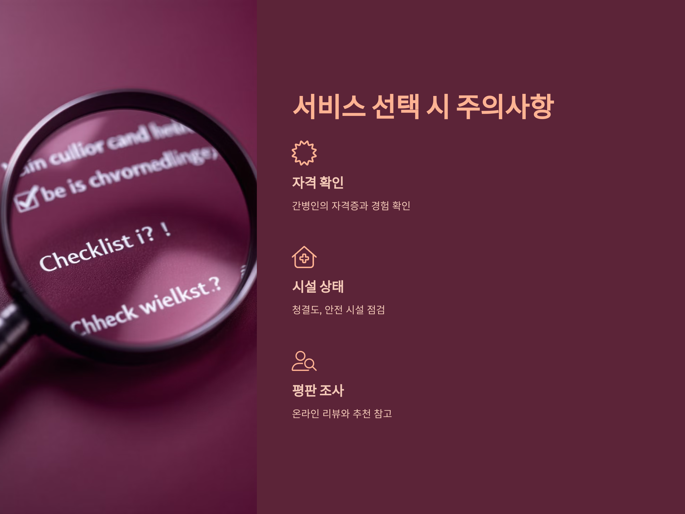 간병 서비스는 신중하게 선택해야 합니다. 아래 사항을 반드시 확인하세요.