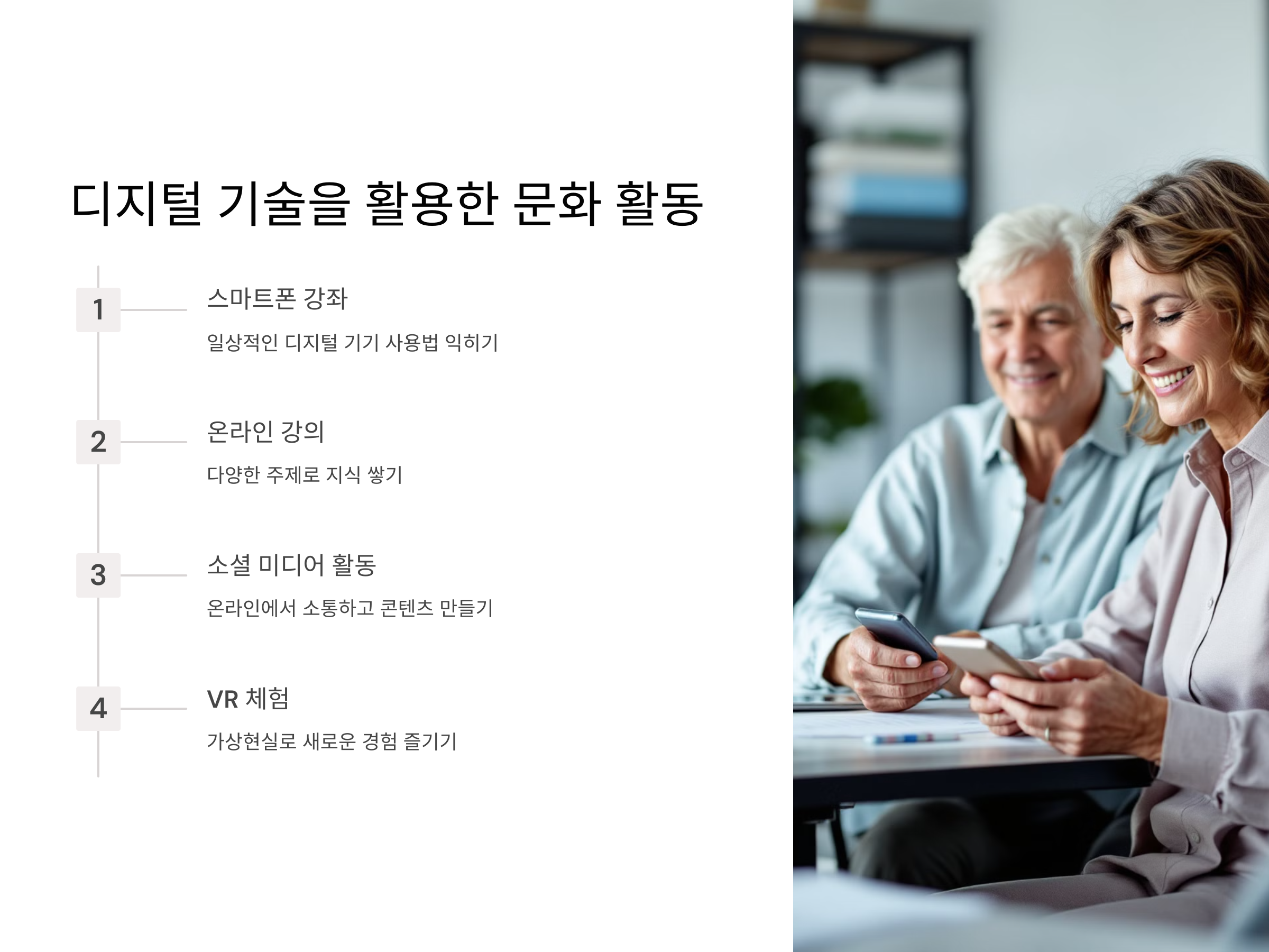 디지털 기기의 발전으로 시니어들도 쉽게 새로운 기술과 문화를 접할 수 있습니다.