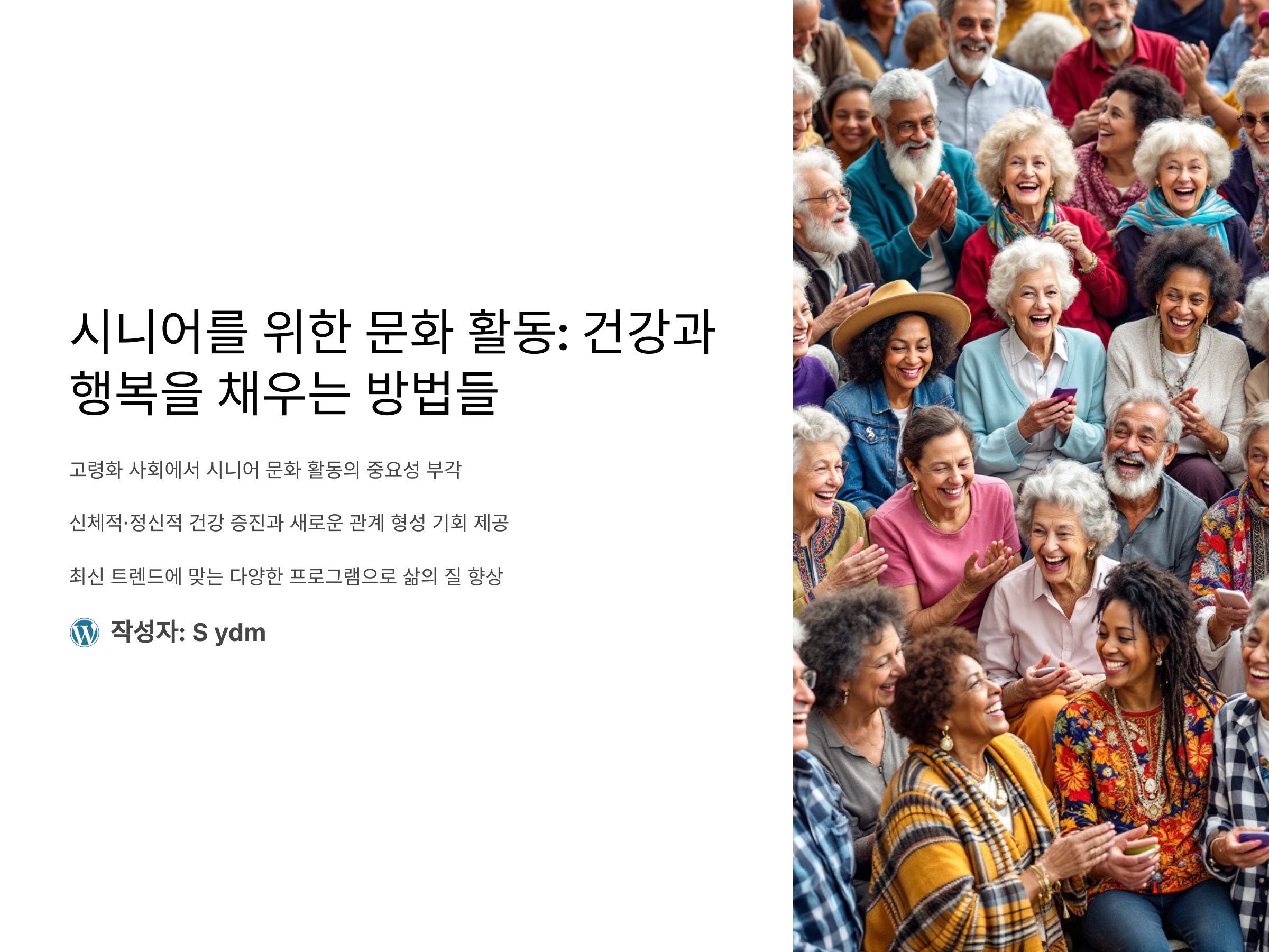 대 사회는 고령화로 인해 시니어 세대를 위한 다양한 문화 활동의 중요성이 부각되고 있습니다. 문화 활동은 단순히 시간을 보내는 것을 넘어, 신체적·정신적 건강을 증진하고 새로운 관계를 맺는 기회를 제공합니다. 최신 트렌드에 맞는 문화 활동과 프로그램을 통해 시니어의 삶의 질을 높이고 사회와의 연결을 강화할 수 있습니다. 특히, 최근에는 디지털 기기를 활용한 온라인 문화 활동과 세대 간 소통을 돕는 활동들이 인기를 끌고 있습니다. 아래에서 다양한 문화 활동 아이디어와 그 효과를 알아보세요.