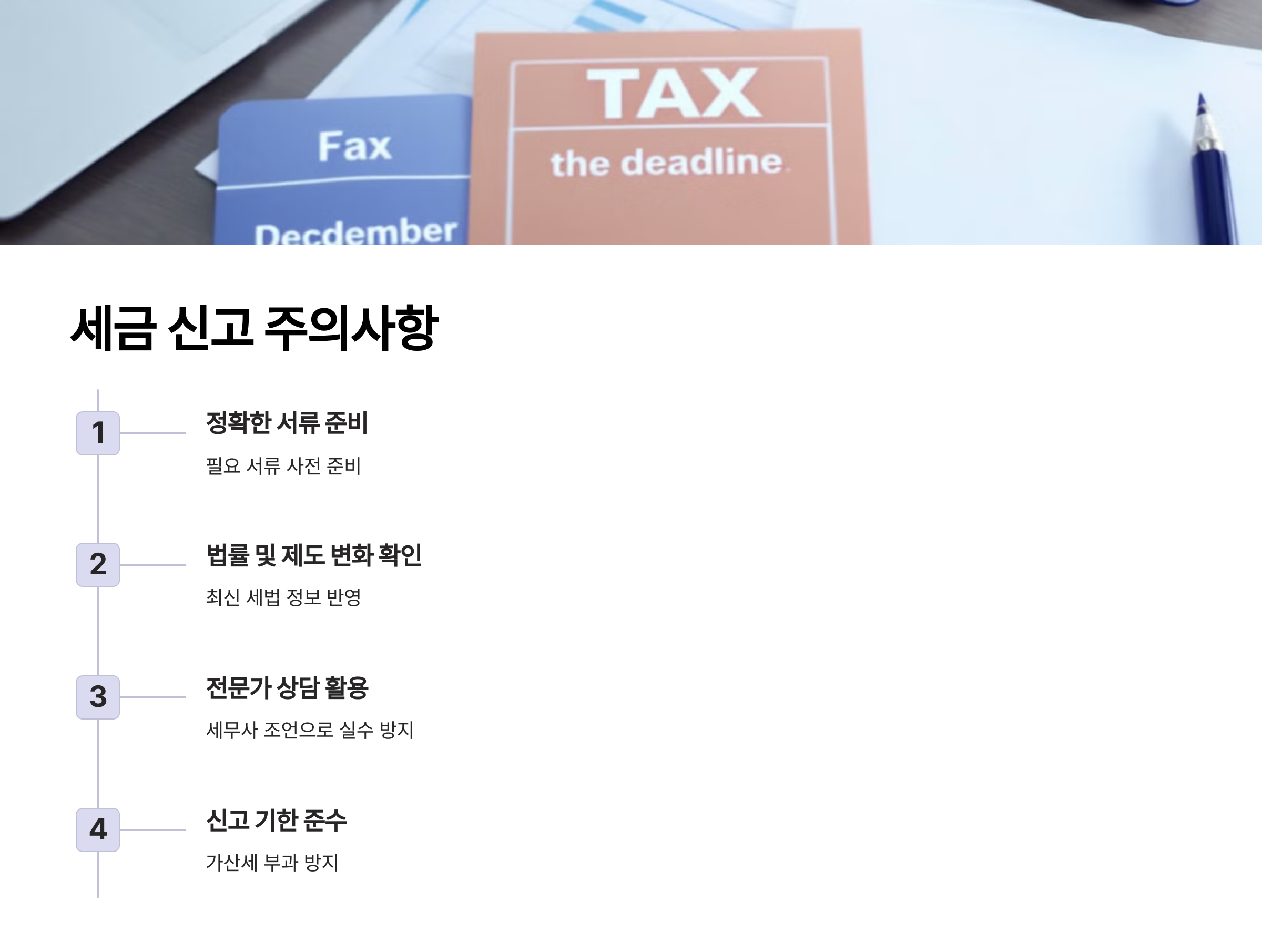세금 신고 과정에서 주의해야 할 점은 다음과 같습니다.
