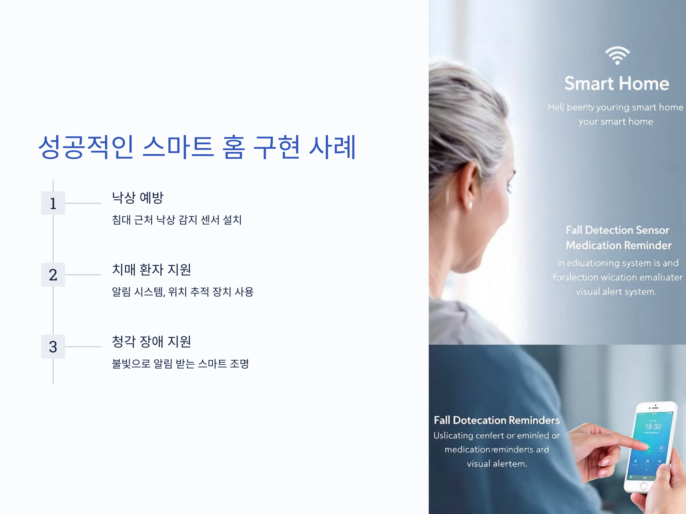 이러한 사례들은 스마트 홈 기술이 시니어의 삶에 실질적인 도움을 줄 수 있음을 보여줍니다.