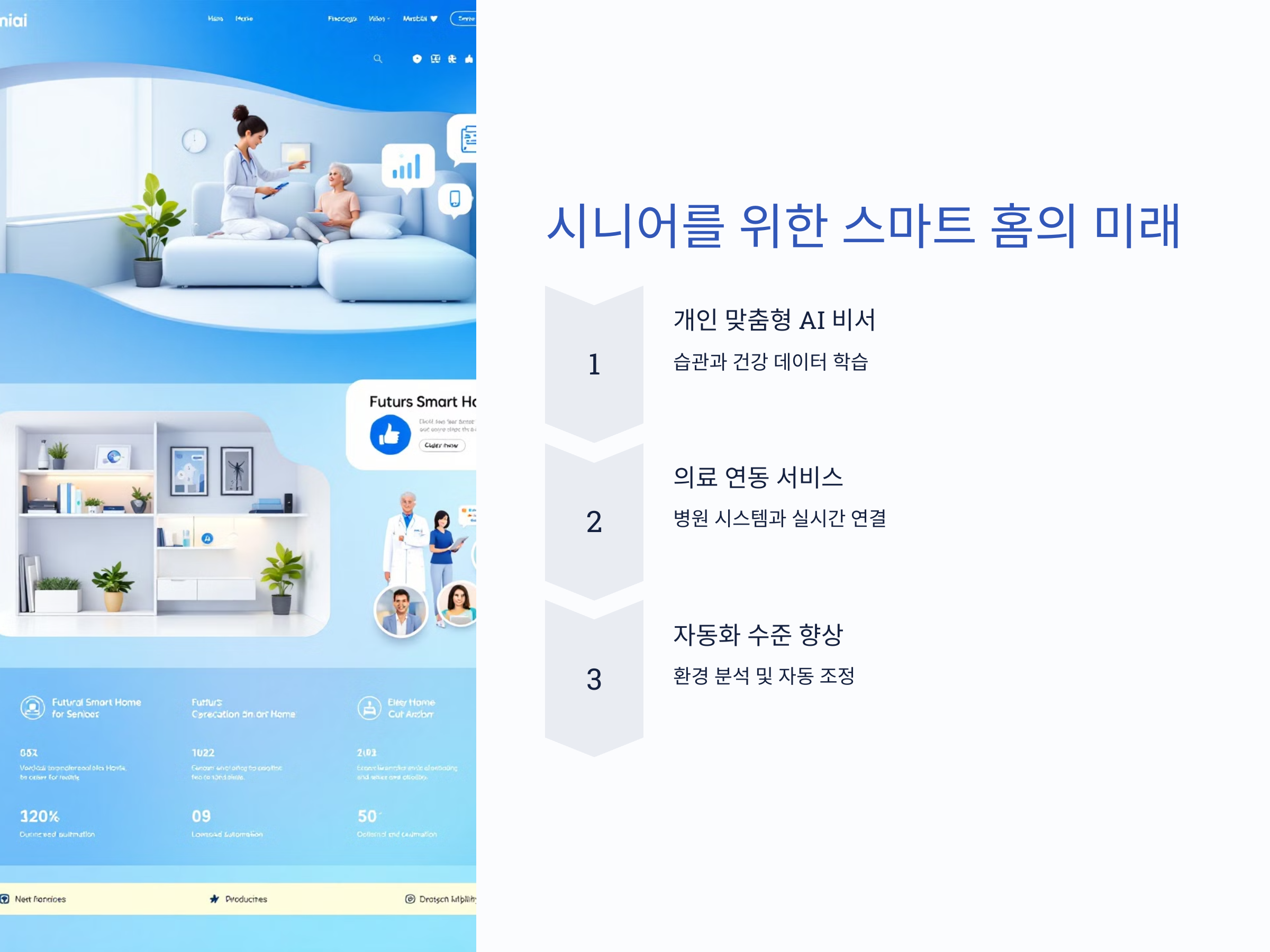 스마트 홈 기술은 AI와 IoT의 발전으로 더욱 진화하고 있습니다. 앞으로 시니어를 위해 다음과 같은 기능들이 추가될 전망입니다.
