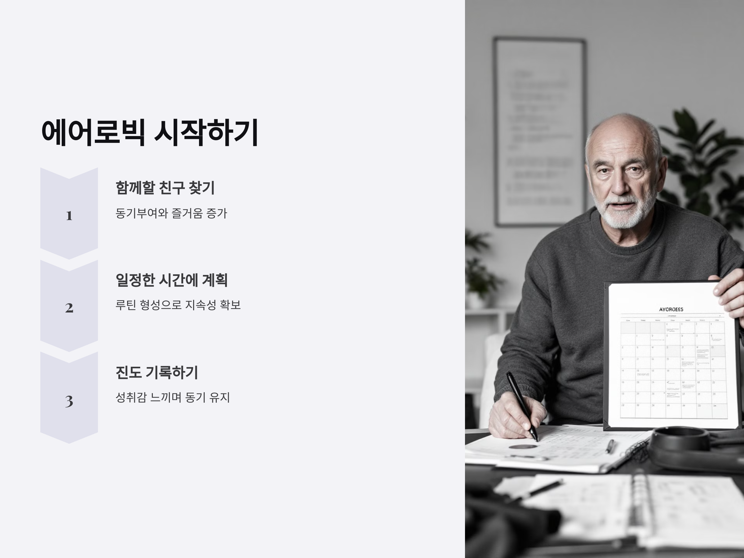 에어로빅은 누구나 쉽게 시작할 수 있는 운동입니다. 중요한 점은 꾸준히 실천하는 것입니다.