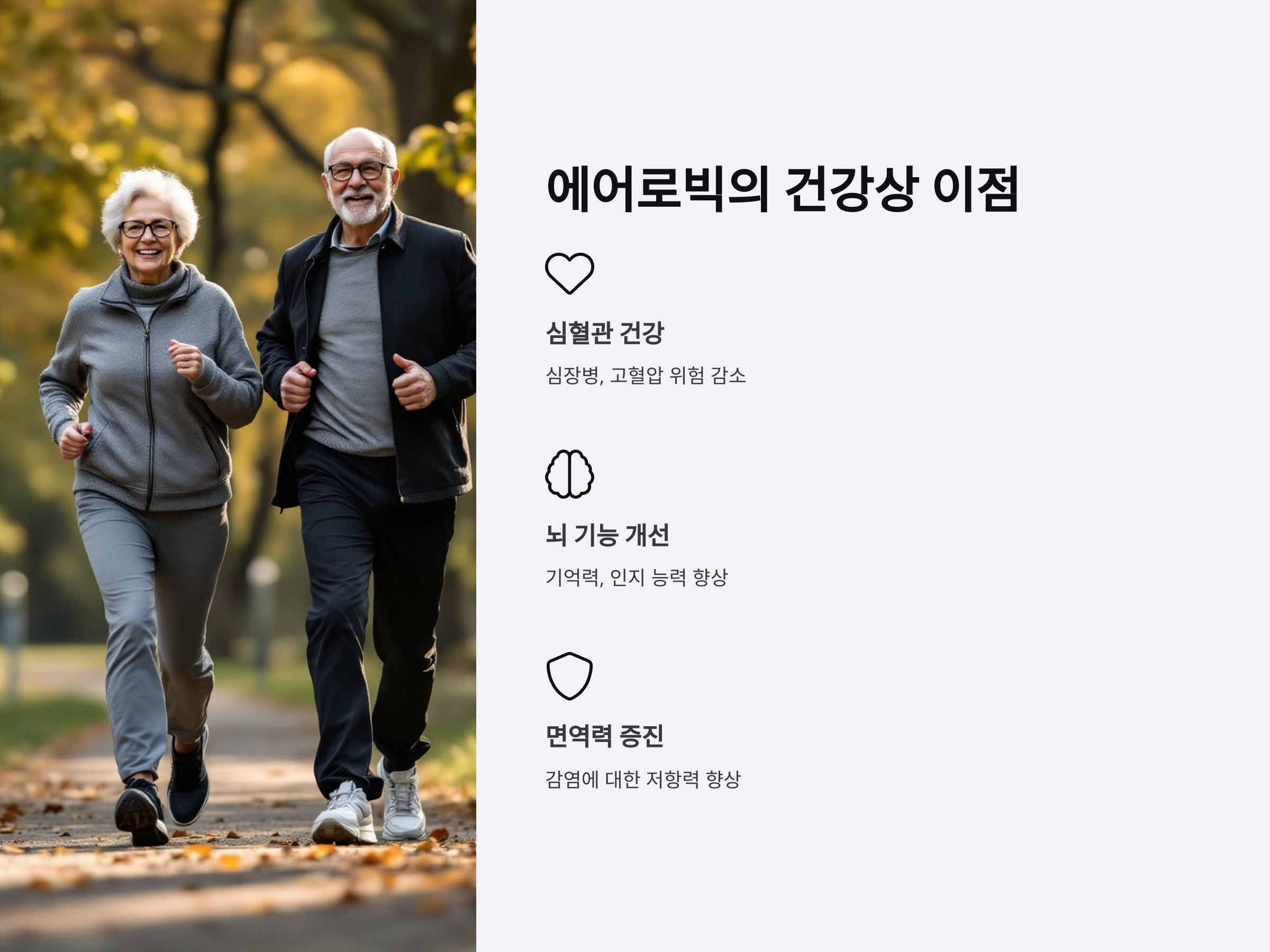 에어로빅은 유산소 운동과 근력 운동을 결합한 형태로, 다음과 같은 장점을 제공합니다:
