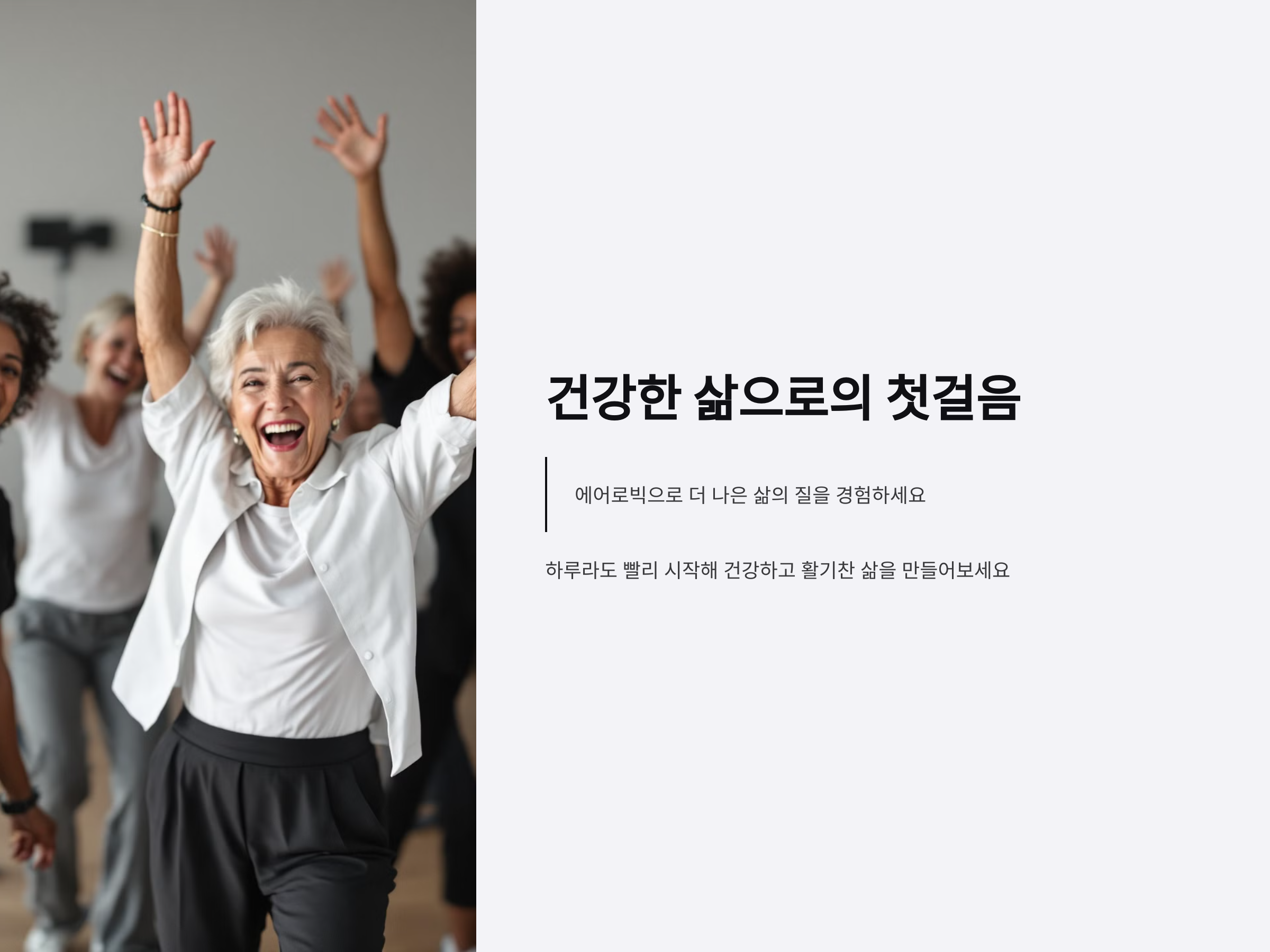 에어로빅을 시작하는 시니어들은 더 나은 삶의 질을 경험할 수 있습니다. 하루라도 빨리 시작해 건강하고 활기찬 삶을 만들어 보세요.
