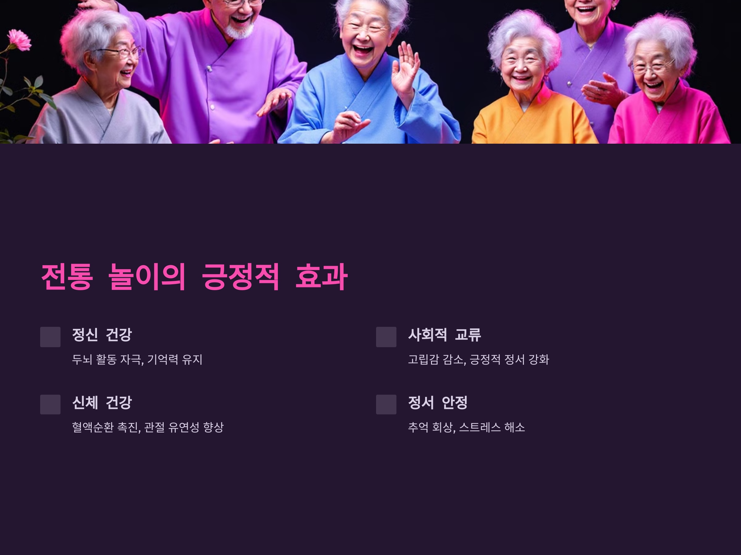 전통 놀이, 시니어의 삶에 미치는 긍정적 효과