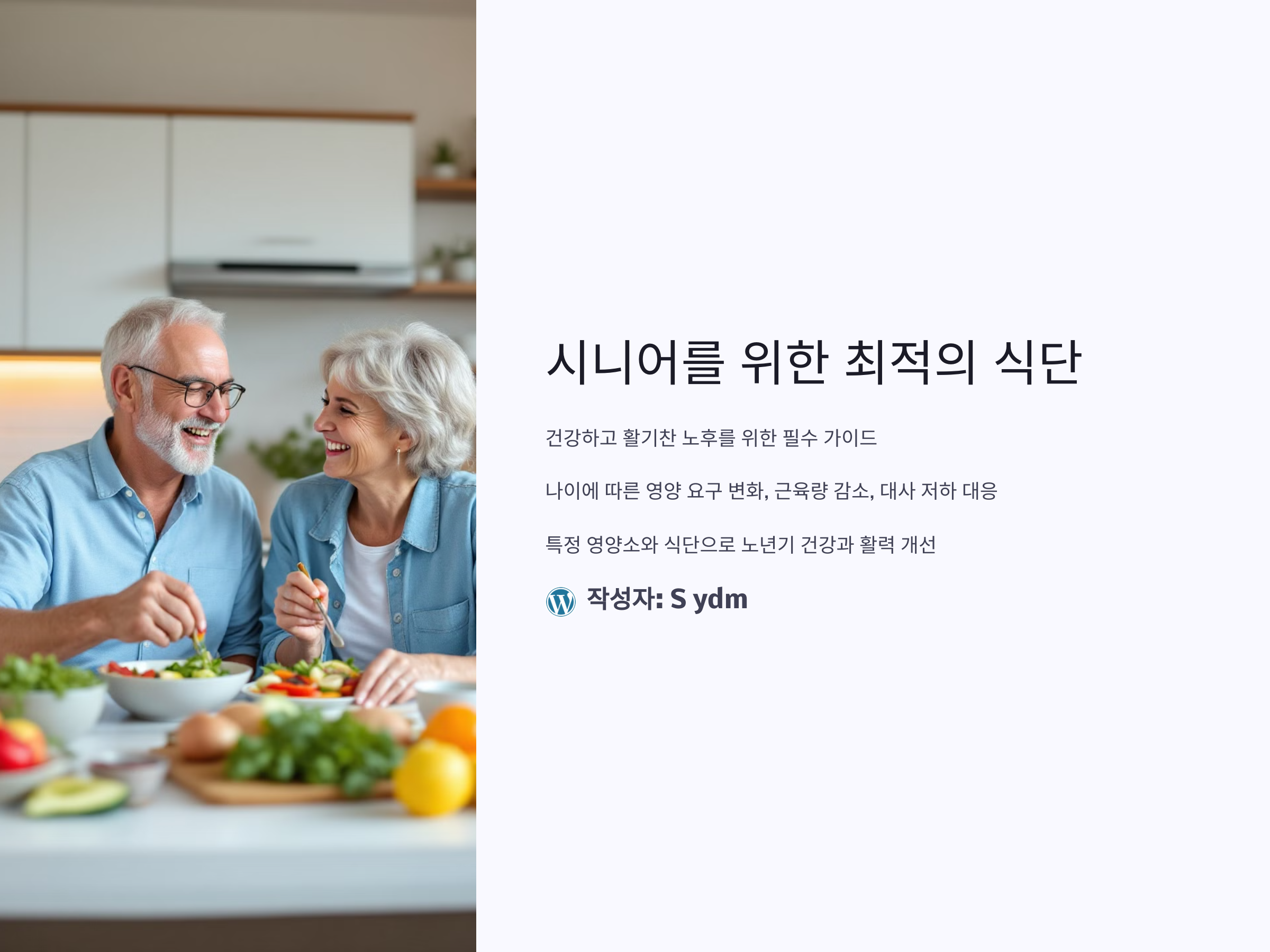 시니어를 위한 식단은 건강한 노후를 위한 투자입니다. 적절한 영양소 섭취와 균형 잡힌 식사를 통해 건강을 유지하고 삶의 질을 높일 수 있습니다. 작은 실천이라도 꾸준히 이어간다면, 더 활기차고 행복한 노년을 보낼 수 있을 것입니다.