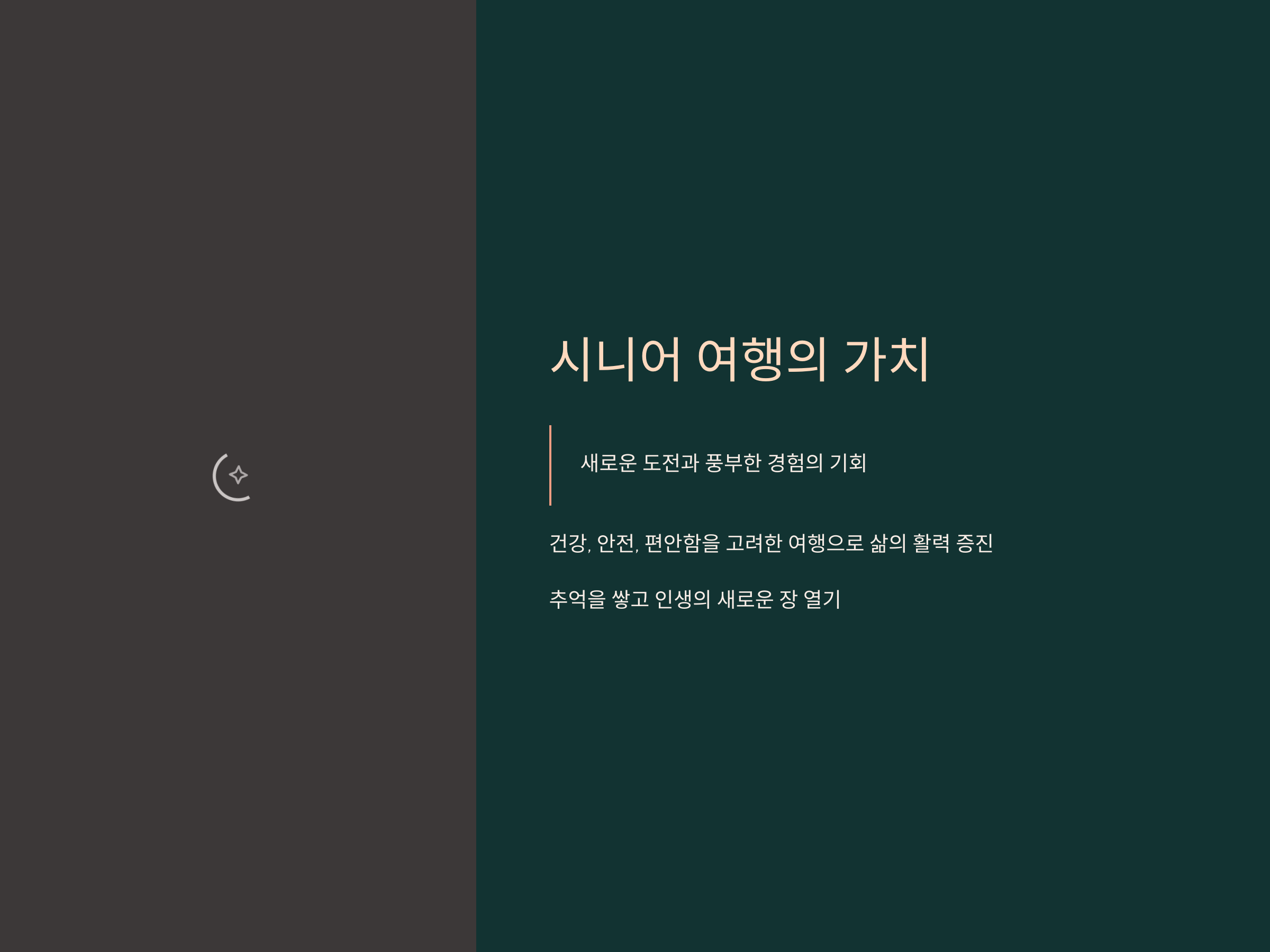 시니어를 위한 여행 계획을 세울 때는 단순히 즐길 거리를 제공하는 것을 넘어선 세심한 배려가 필요합니다. 안전성과 건강 관리, 이동의 편리함, 휴식 공간의 질 등이 가장 중요합니다.