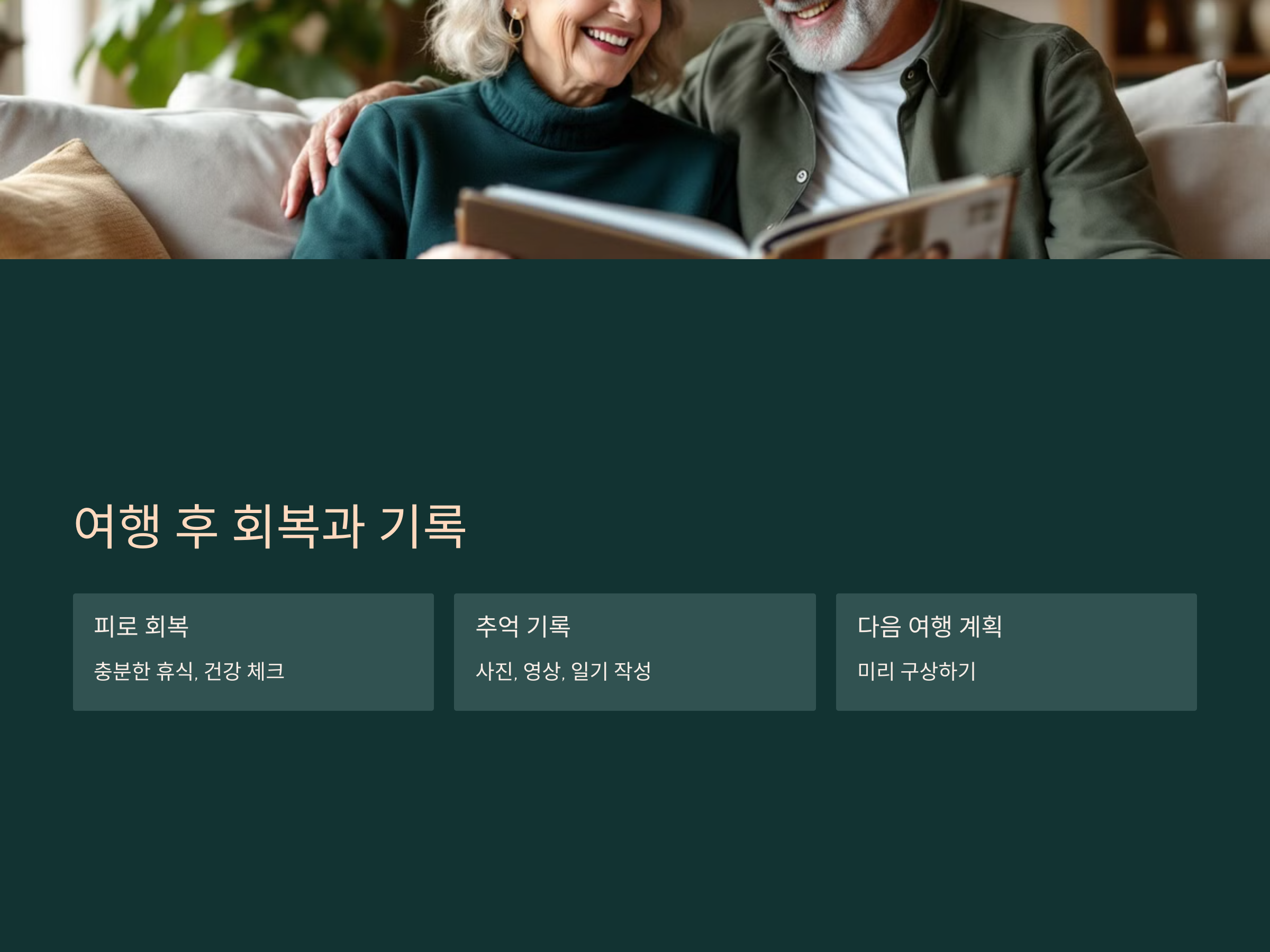 여행 후에는 몸과 마음의 회복과 함께 추억을 기록하는 시간을 가지세요. 사진 앨범을 제작하거나 여행 노트를 작성하면 여행의 기억이 오래 지속됩니다.